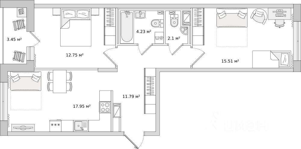 При покупке квартиры без участия агентов дарим сертификат новосела в магазин HOFF на сумму 50 000 рублей. Им можно оплатить не более 15% от суммы покупки.
