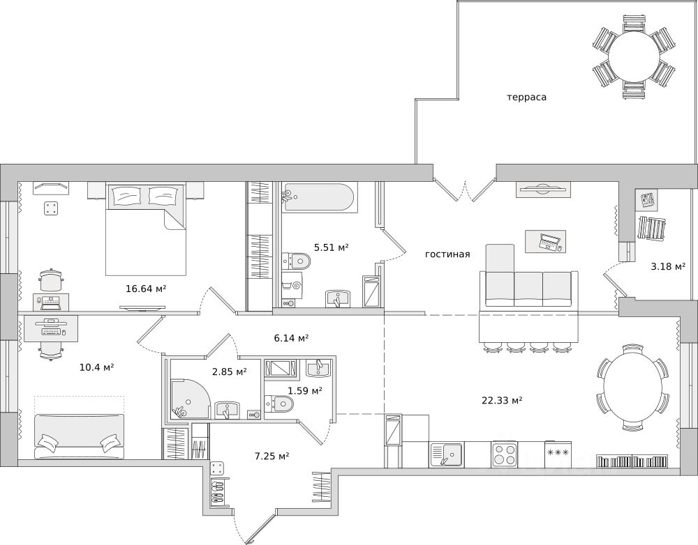 Продаётся двухкомнатная квартира в жилом комплексе ЦДС ''Чёрная Речка'', Корпус 7Номер квартиры — 1344.