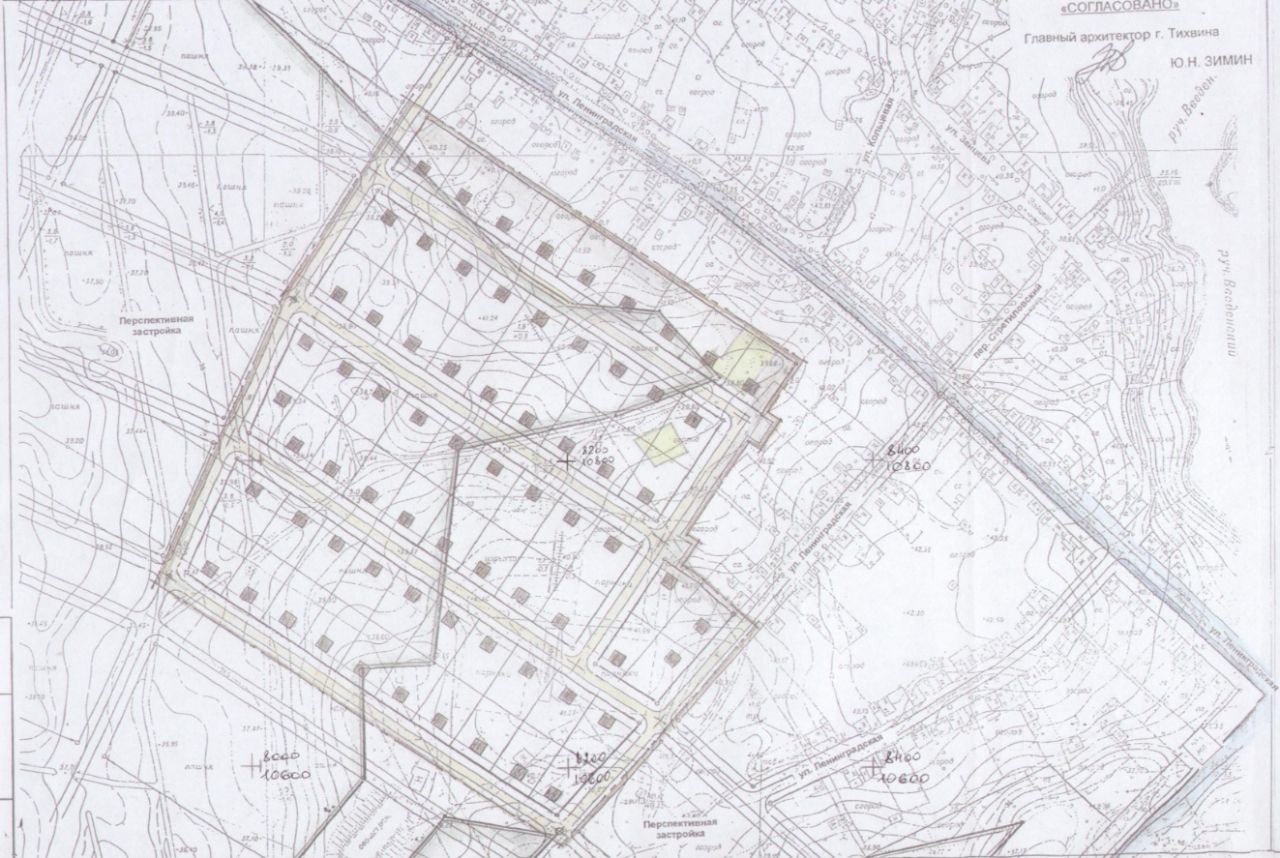 Продам земельный массив площадью почти 13 гектар для малоэтажного и среднеэтажного жилищного строительства в черте города Тихвин. В том числе непосредственно под застройку под коттеджный посёлок площадь почти 8 гектар (без дорог и озеленения). Участок в настоящее время относится к категории земель населённых пунктов, ври с/х назначения, но в ближайшее время планирую перевод в ИЖС на основании Постановления 02-775-а от 11.09.2009г. Администрации Тихвинского городского поселения Об утверждении проекта планировки и межевания квартала жилой застройки в деревне Стретилово (южная часть) Тихвинского городского поселения Тихвинского муниципального района Ленинградской области утвержден проект (см. фото). Фрагмент планируемого генплана Тихвина на фото.