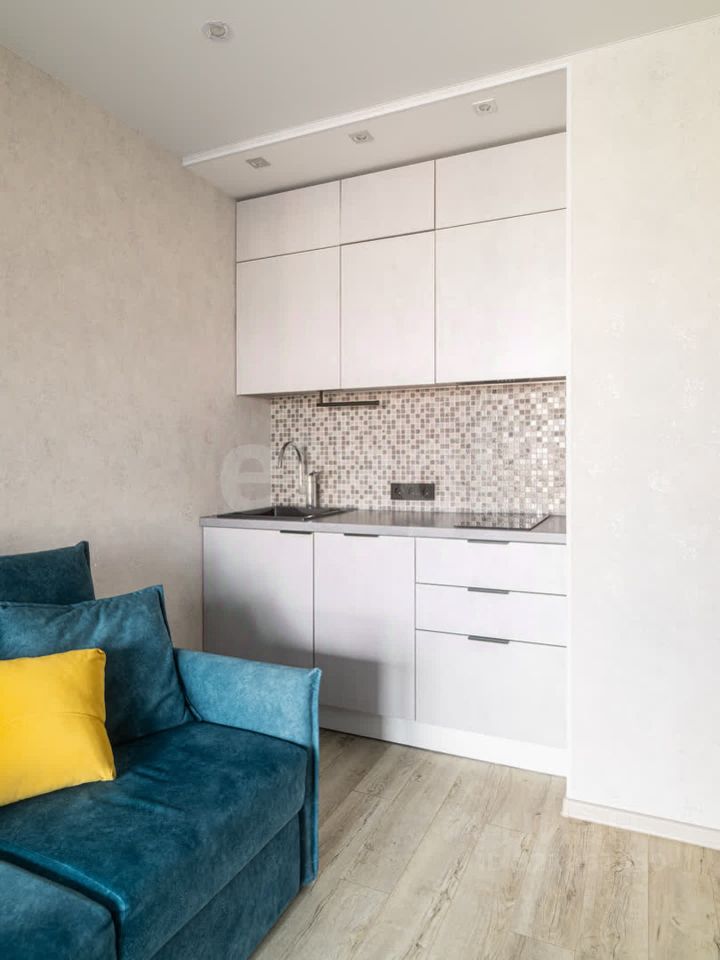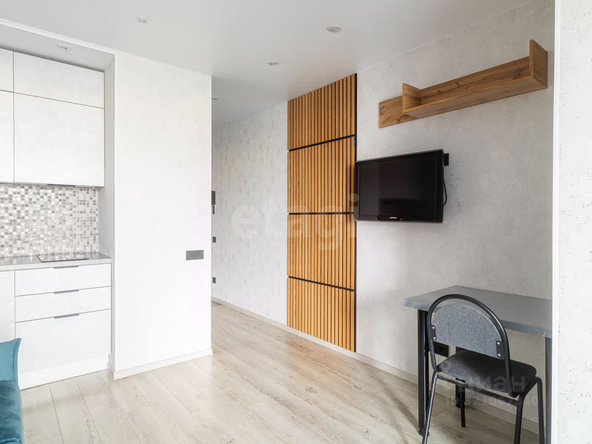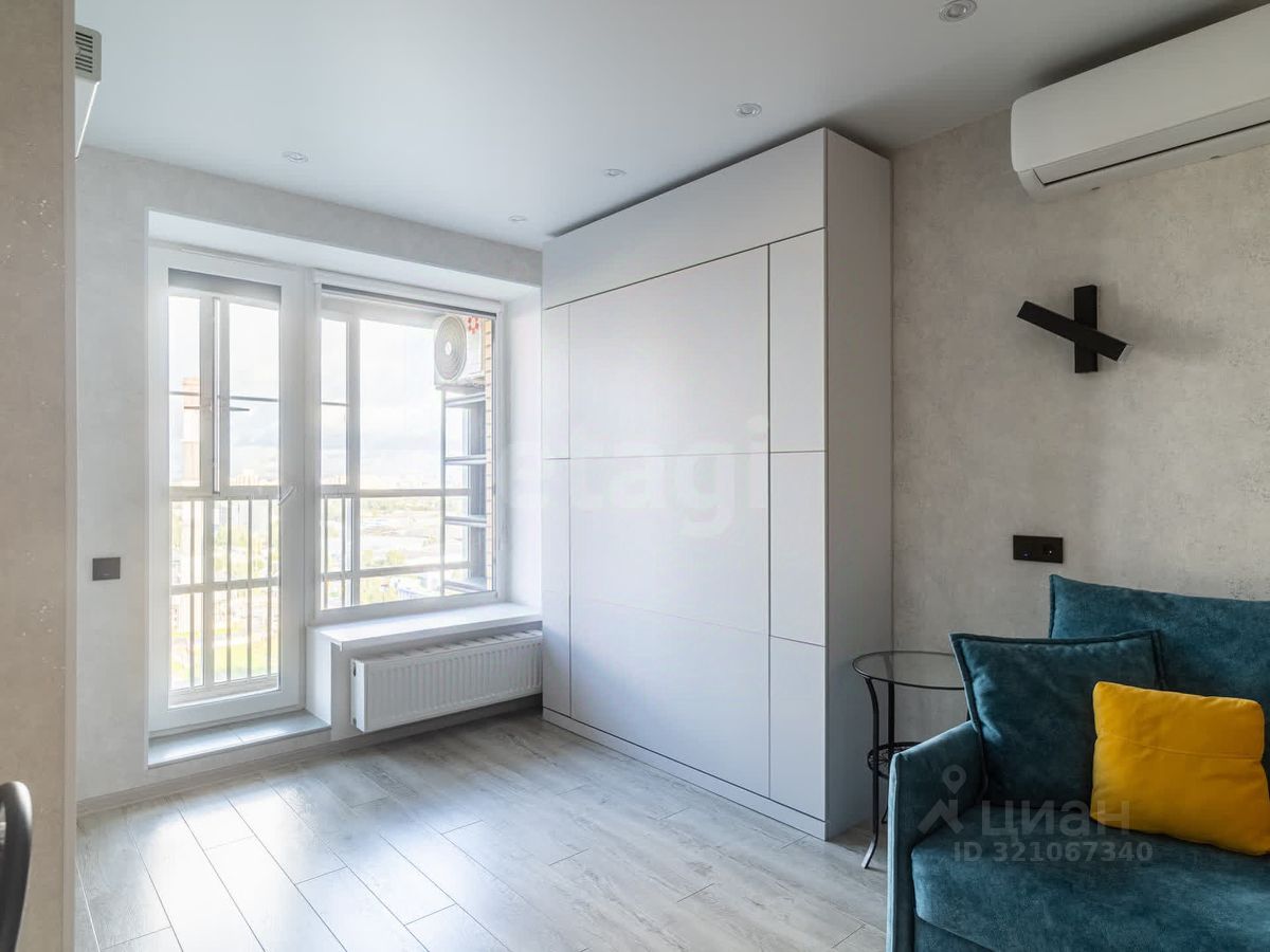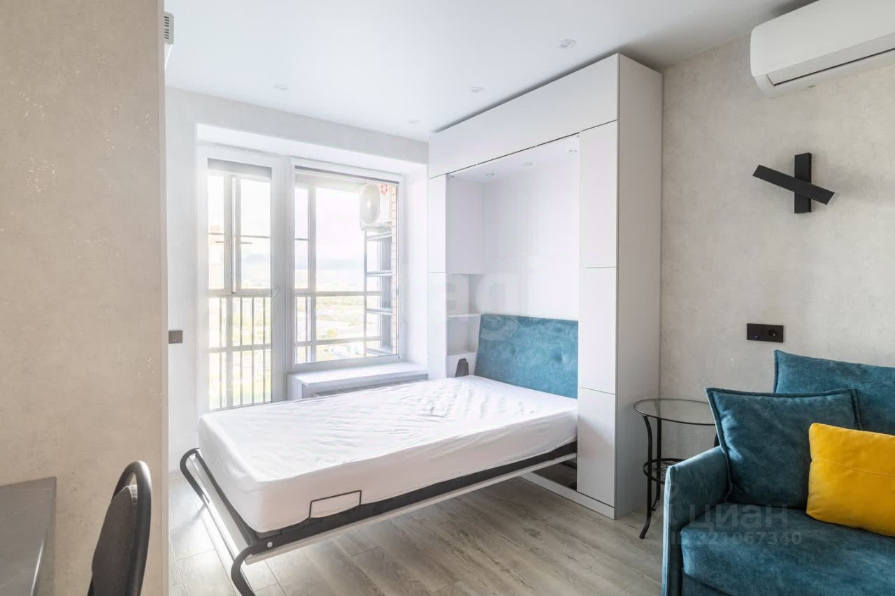 Продается студия с качественным ремонтом по дизайн-проекту, площадью 26,5 кв. м плюс балкон 3,5 кв. м в современном монолитном доме 2021 года постройки на улице Полевая Сабировская. Объект находится на 21-м этаже, что обеспечивает панорамные виды, обилие естественного света и высокий уровень приватности. Квартира оформлена в собственности, дополнительно застрахована до июля 2026 года.