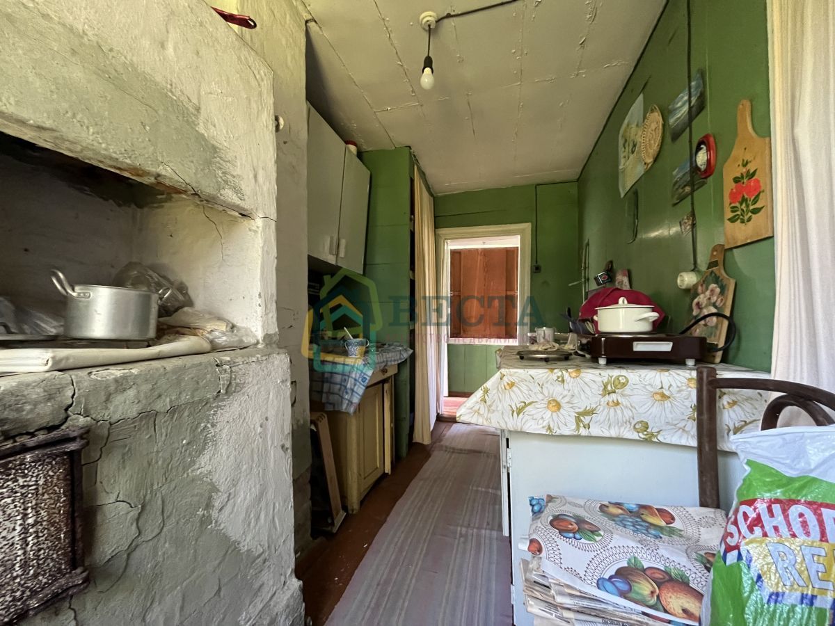 2-х этажный 30м2. 1 этаж: 2 комнаты, кухня, прихожая 2 этаж: 1 комнаты. Фундамент - ж/б лента, крыша - шифер. Окна - деревянные, забор по периметру участка, с одним заездом, дороги регулярно обслуживаются