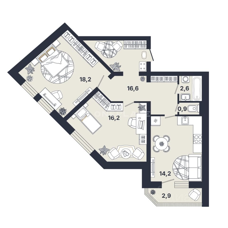 О квартире • Качественный ремонт — можно заехать и жить • Удобные системы хранения • Кухня с техникой • Раздельный санузел • Просторный балкон, окна на солнечную сторону