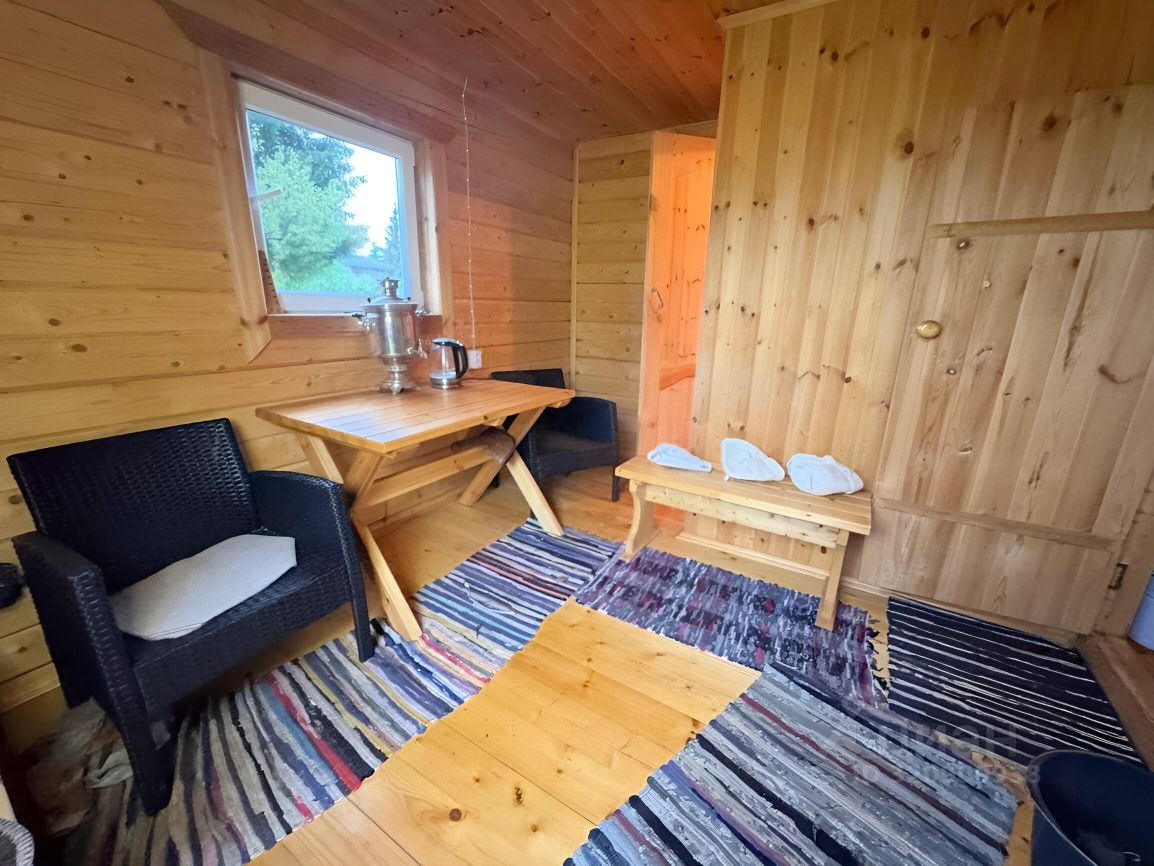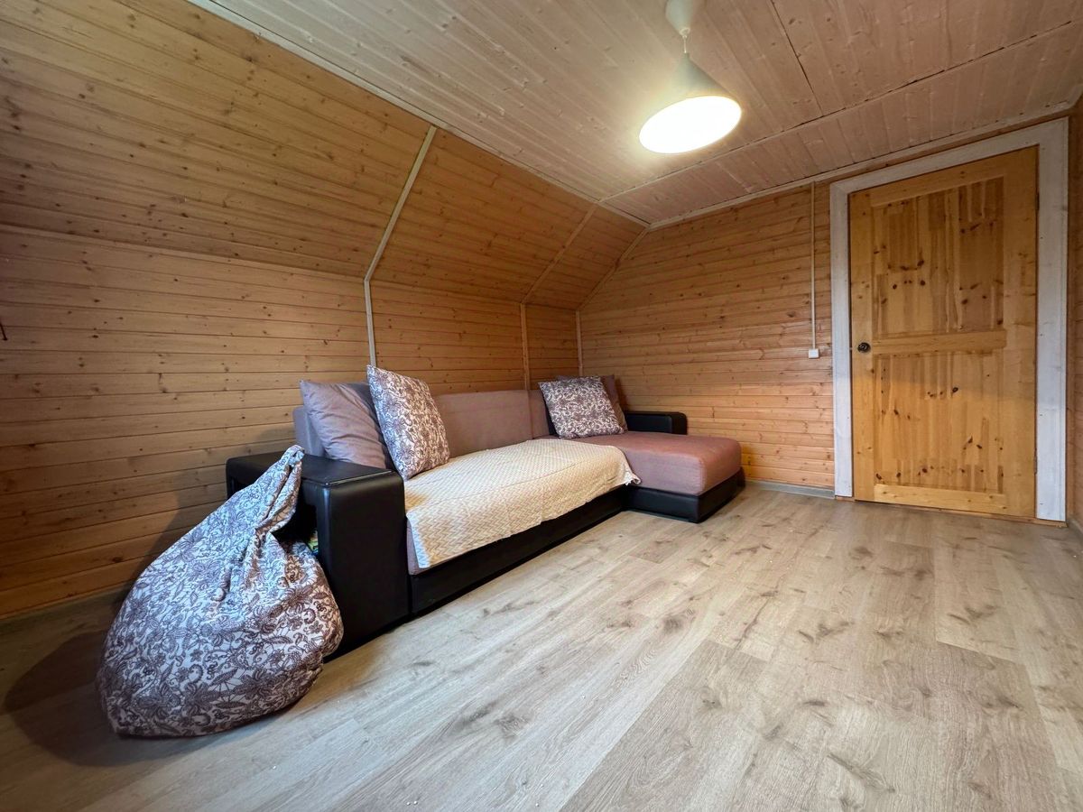 В доме находятся: кухня - гостиная на первом этаже с двумя спальными местами, просторный санузел, тамбур и крыльцо.
