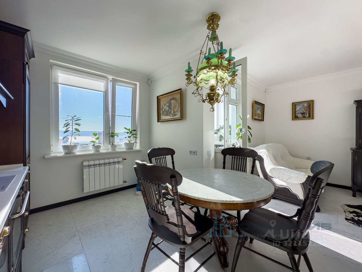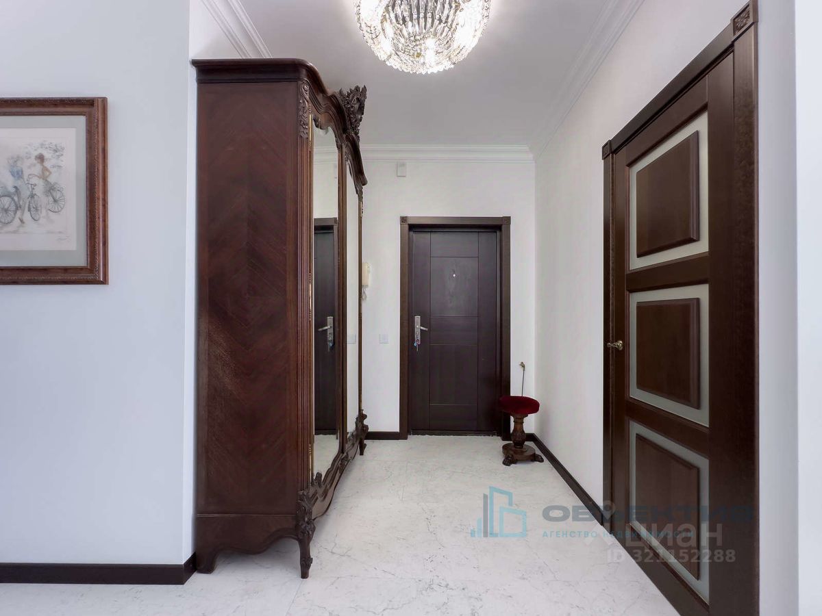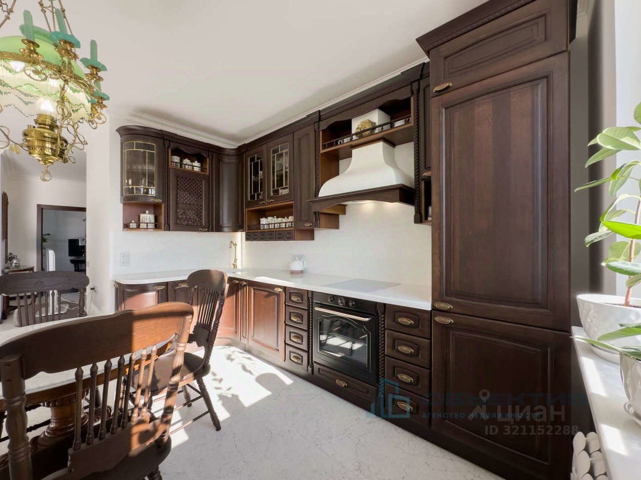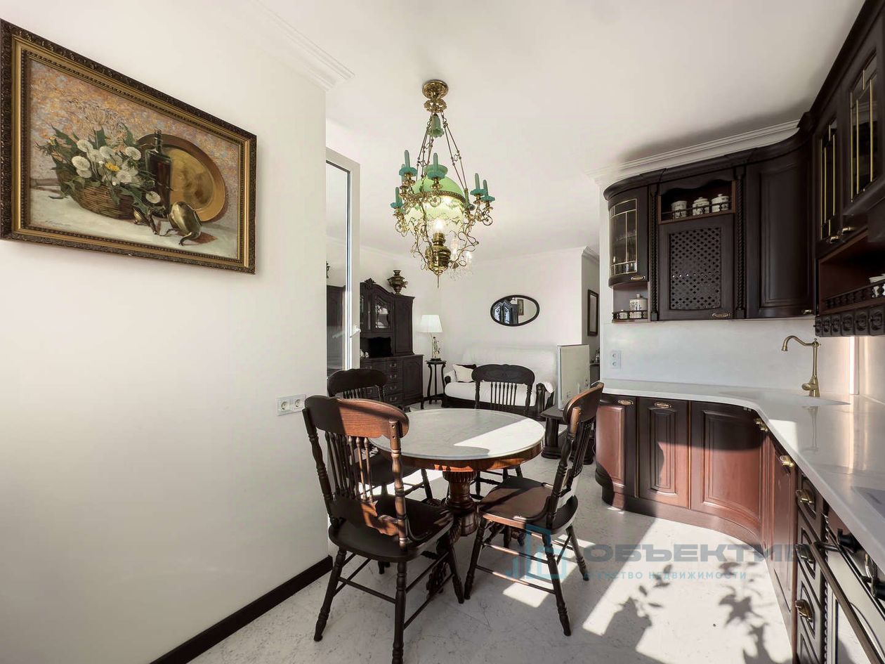 Ремонт и интерьер: Выполнен в классическом стиле с использованием премиум-материалов. Полы: художественный паркет в комнатах и крупноформатный керамогранит в кухне, коридоре и санузле. Окна: энергосберегающие трехкамерные стеклопакеты с подоконниками из искусственного камня. Межкомнатные двери из массива ольхи. Кухня-гостиная: Итальянская кухня от Scavolini с фасадами из массива акации и гнутыми элементами, столешница, фартук и интегрированная мойка из искусственного камня без швов и стыков, цельная от стены до стены, встроенный холодильник, стеклокерамическая варочная панель и духовой шкаф с конвекцией. Спальни: Две изолированные комнаты с гардеробной в главной спальне. Санузел: Бронзовые итальянские смесители и душевой гарнитур от Miglione, унитаз, биде и раковина от шведского бренда Jacob Delafon. Лепнина на потолках, натуральное дерево и мрамор в отделке. Вся мебель и техника остаются.