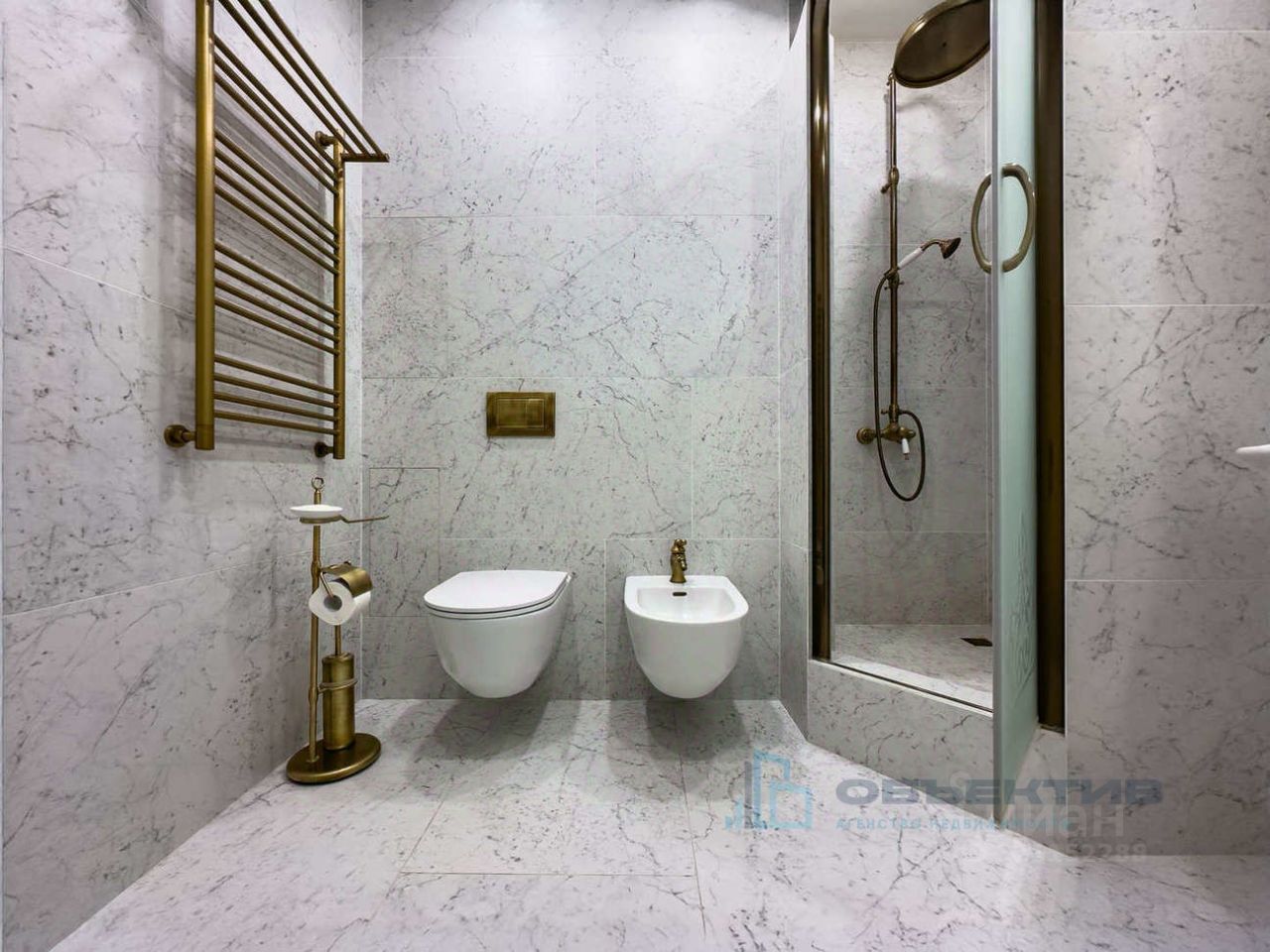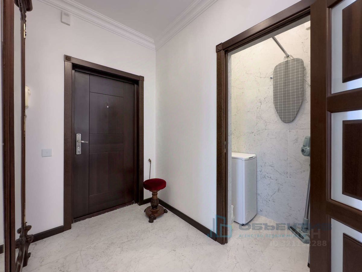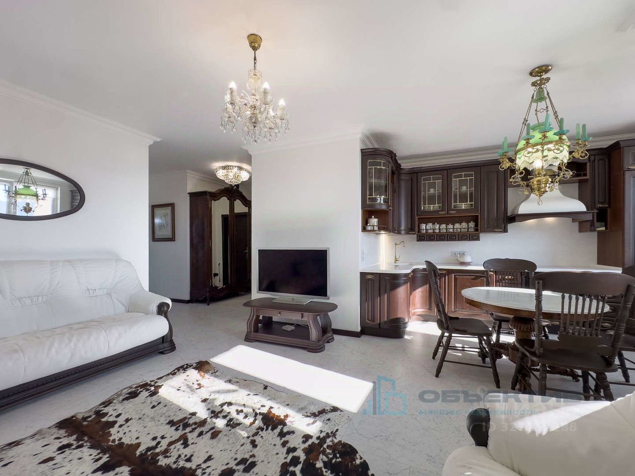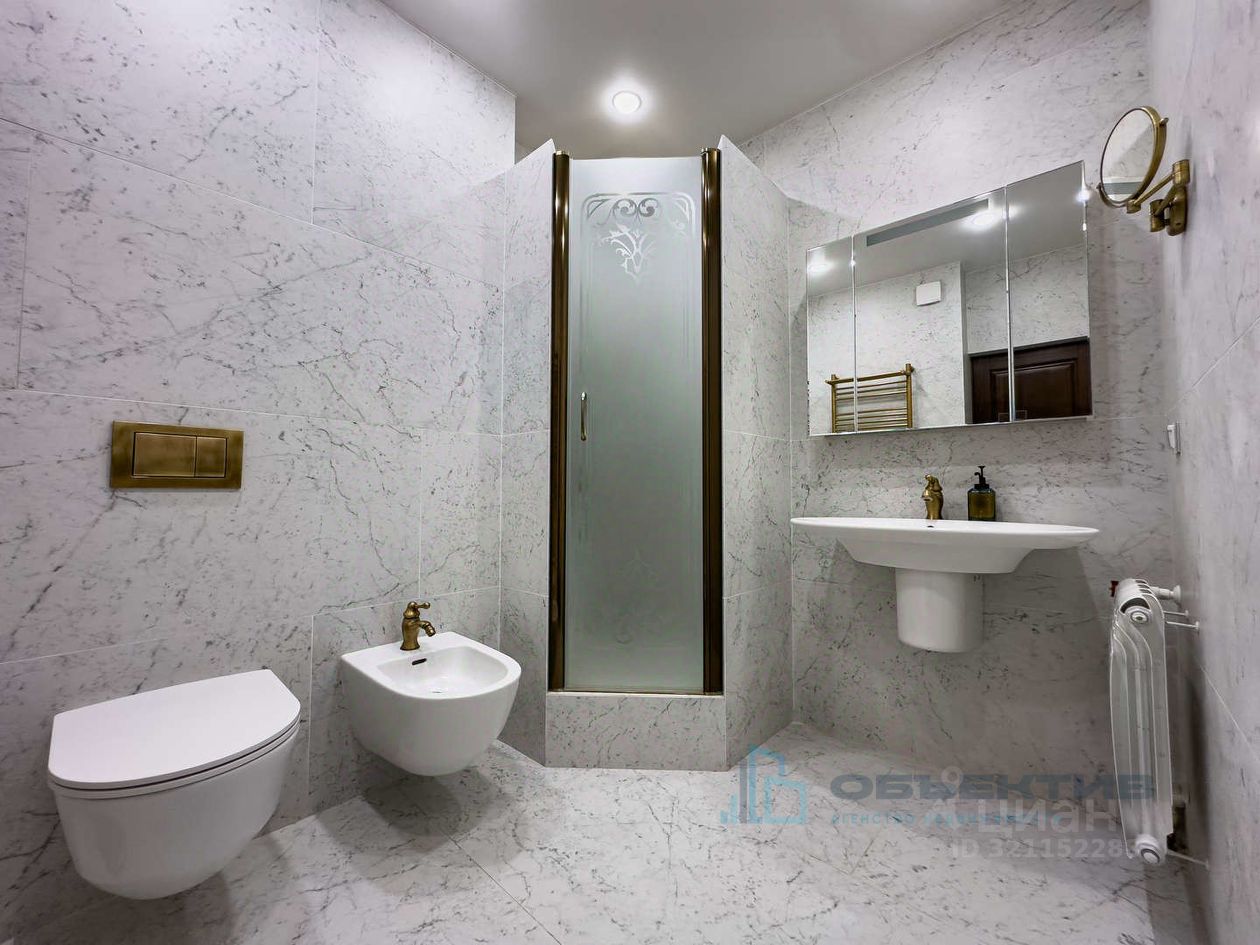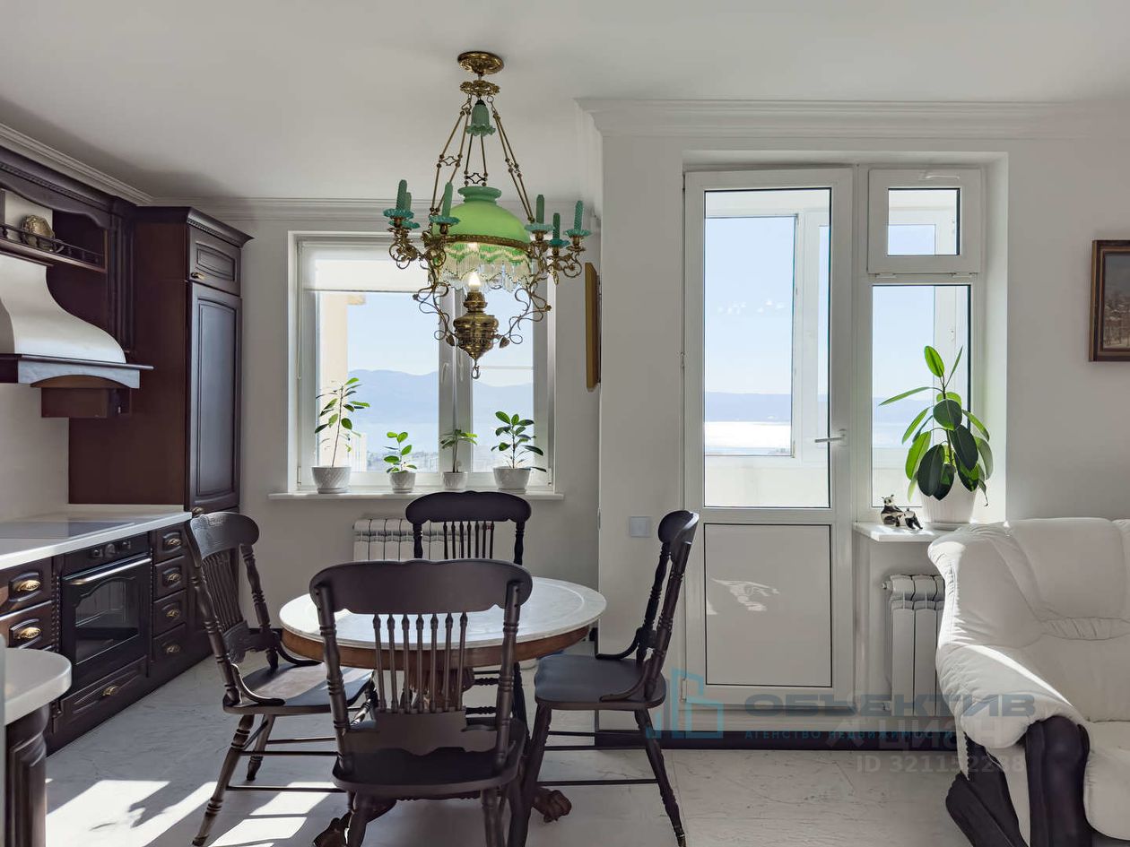 Ремонт и интерьер: Выполнен в классическом стиле с использованием премиум-материалов. Полы: художественный паркет в комнатах и крупноформатный керамогранит в кухне, коридоре и санузле. Окна: энергосберегающие трехкамерные стеклопакеты с подоконниками из искусственного камня. Межкомнатные двери из массива ольхи. Кухня-гостиная: Итальянская кухня от Scavolini с фасадами из массива акации и гнутыми элементами, столешница, фартук и интегрированная мойка из искусственного камня без швов и стыков, цельная от стены до стены, встроенный холодильник, стеклокерамическая варочная панель и духовой шкаф с конвекцией. Спальни: Две изолированные комнаты с гардеробной в главной спальне. Санузел: Бронзовые итальянские смесители и душевой гарнитур от Miglione, унитаз, биде и раковина от шведского бренда Jacob Delafon. Лепнина на потолках, натуральное дерево и мрамор в отделке. Вся мебель и техника остаются.