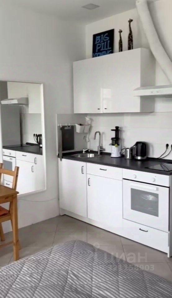 Планировка студии позволяет вместить большой шкаф для хранения вещей и одежды. Комната с двумя окнами, и кухня полностью оборудованная всем необходимым. Вся мебель и техника включена в стоимость.
