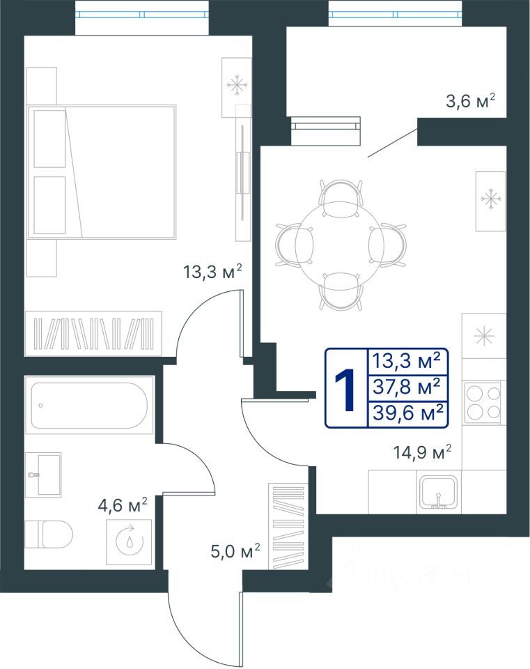 продам 1-к, Ворошилова, 196 835 554 ₽