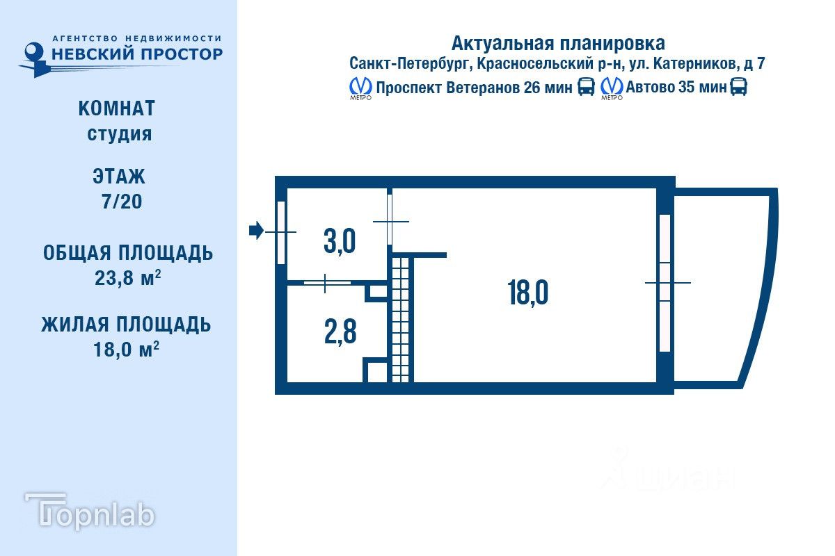 Транспортная доступность также на высоте: выезды на КАД и ЗСД находятся всего в 10 минутах езды, а до станций метро ''Ленинский проспект'' и ''Проспект Ветеранов'' можно добраться за 25 минут.