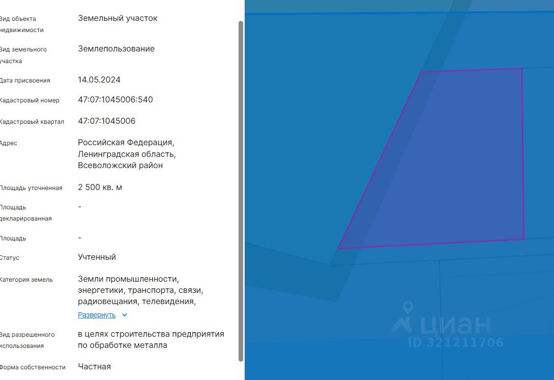 В промышленной зоне Ковалево, расположенной в 5 км от Рябовского шоссе, г. Санкт-Петербург, продаётся земельный участок площадью 2500 кв. м.