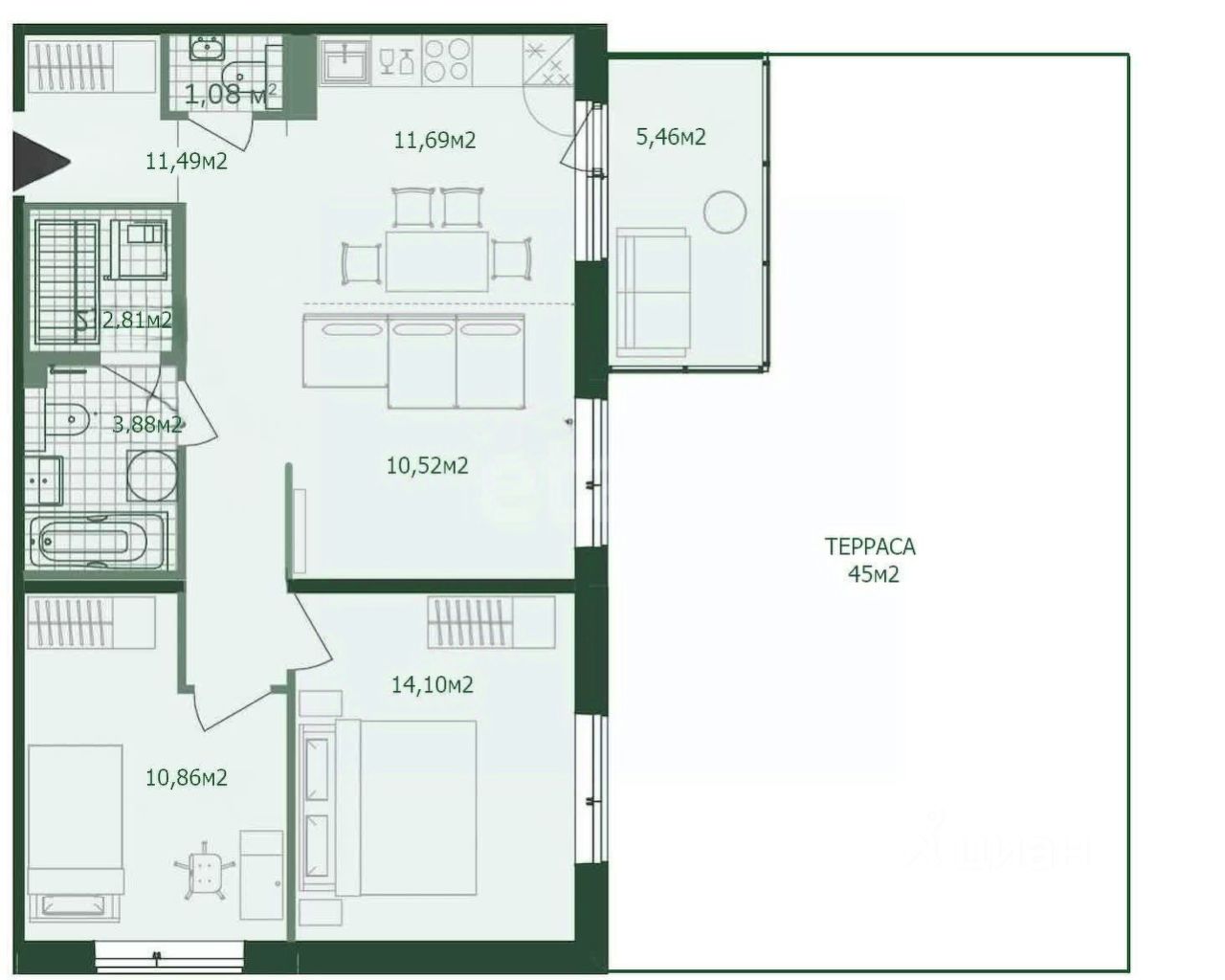 О КВАРТИРЕ. 2 просторных спальни. Большая просторная гостиная, объединённая с кухней, имеет выход на остекленный балкон, а с балкона можно выйти на террасу, где в хорошую погоду можно устроить пикник, или просто насладиться чистым и свежим воздухом, умиротворенно качаясь на качелях.