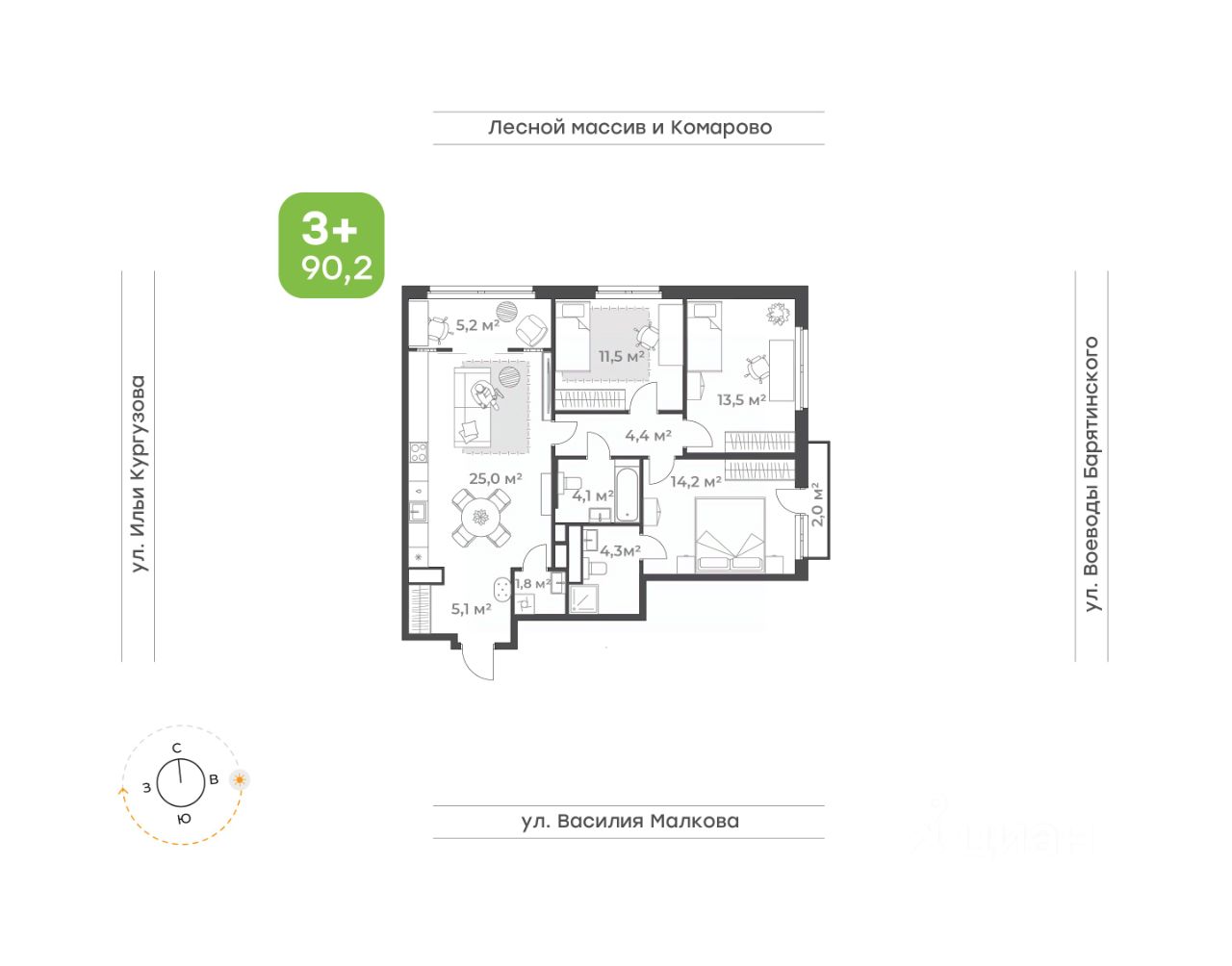 •В вашей мастер-спальне есть собственный просторный санузел!