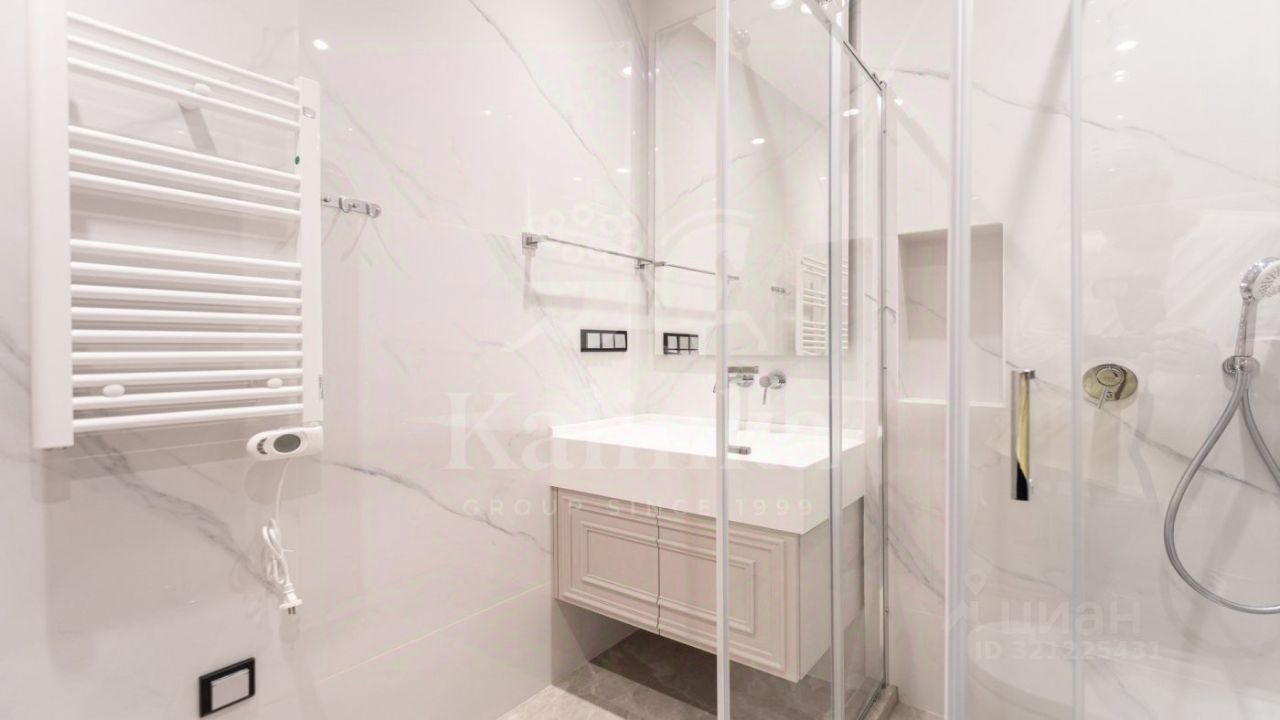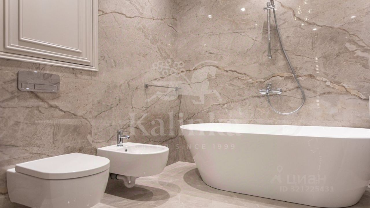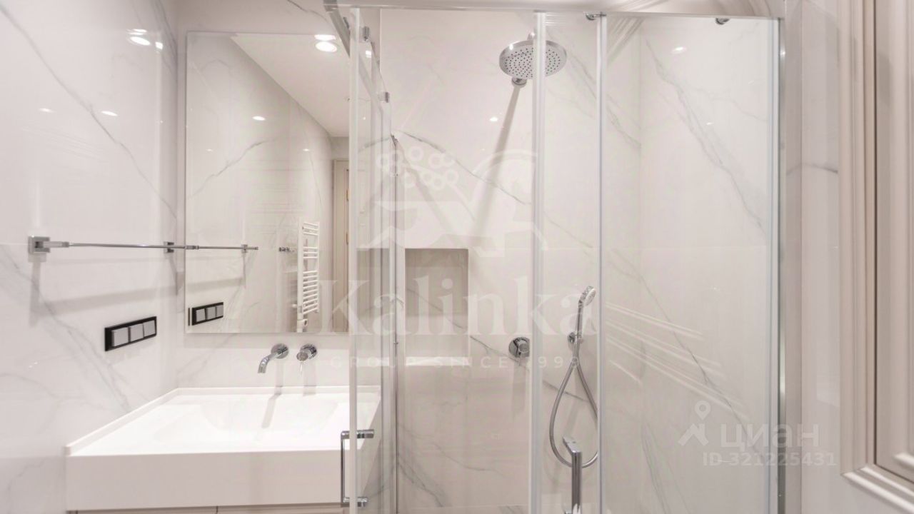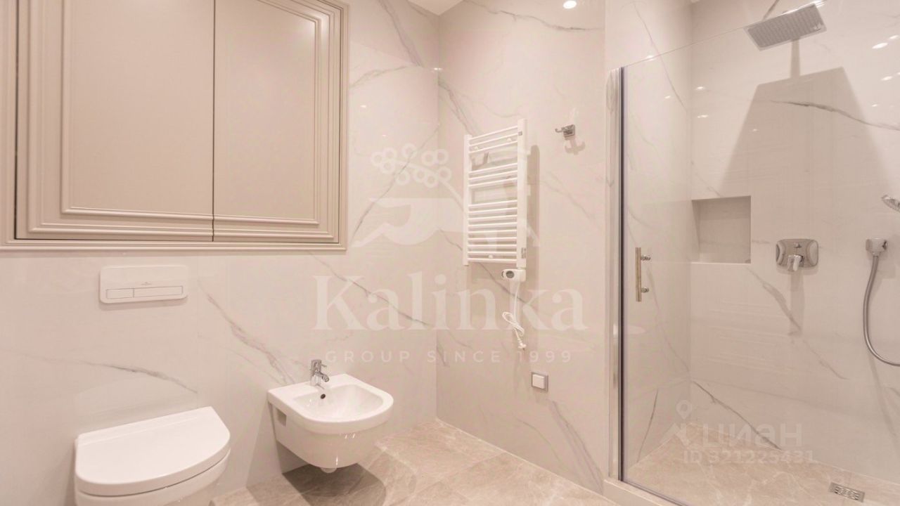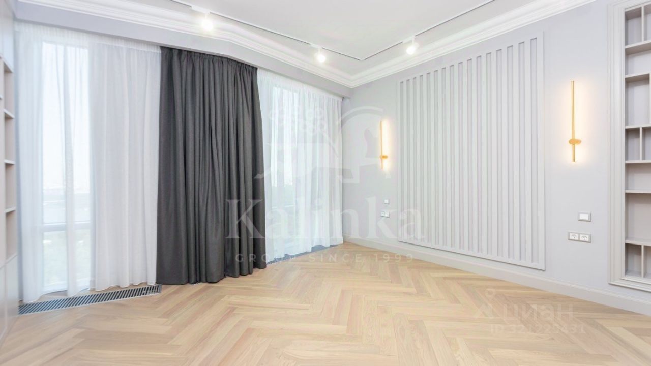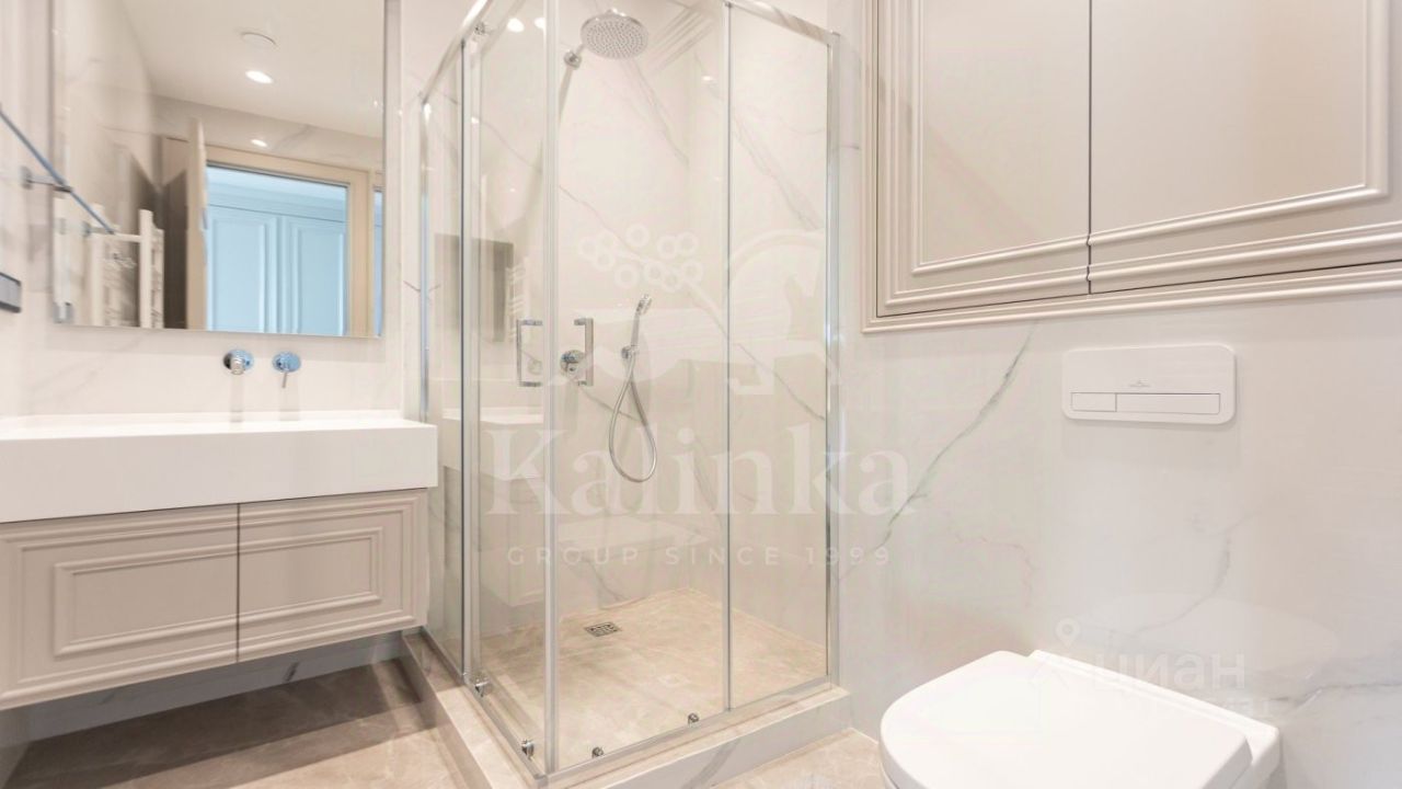 Планировка квартиры включает кухню-гостиную, две просторные мастер-спальни с индивидуальными ванными комнатами и гардеробными, две дополнительные спальни, два санузла, постирочную и прихожую. Высокие панорамные окна наполняют комнаты ярким естественным светом. Выполнен качественный новый ремонт с использованием дорогих материалов.