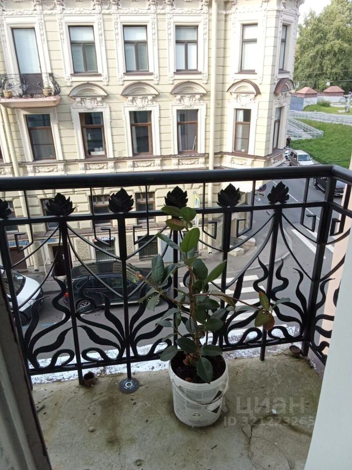 В комнате 27,7 кв м печь и балкон с видом на улицу и сквер.