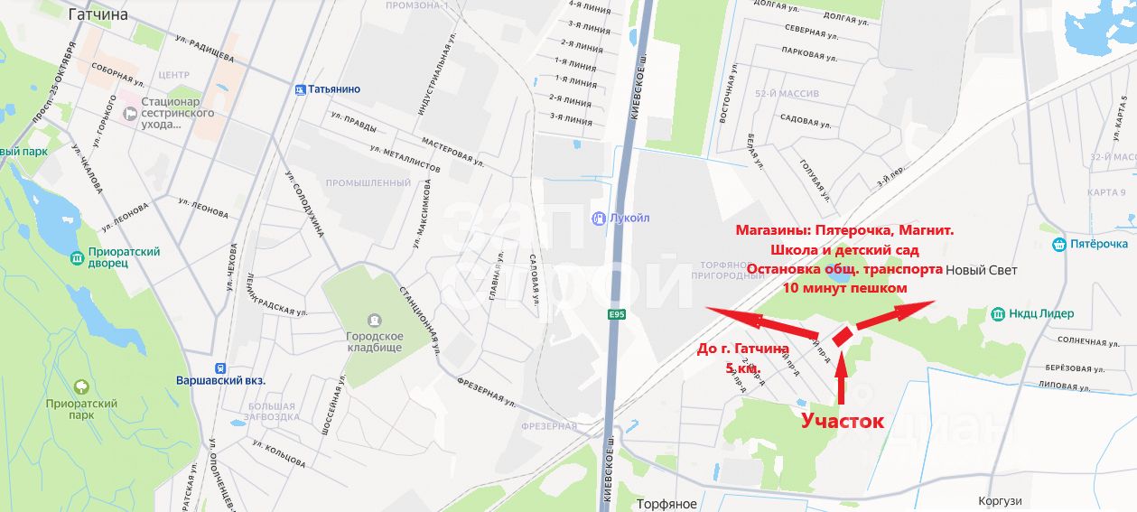 ИНФРАСТРУКТУРА и ТРАНСПОРТ: в 10 минутах пешей доступности располагается поселок Новый Свет, в котором есть вся необходимая инфраструктура: сетевые магазины Магнит, Пятерочка, Сбербанк, Почта, Пригородная школа, Детский сад 14, пункты выдачи заказов. До города Гатчина и Варшавского вокзала можно доехать на общественном транспорте за 30 минут.
