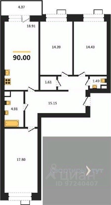 Общая площадь90 м2