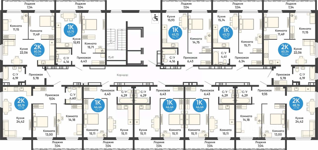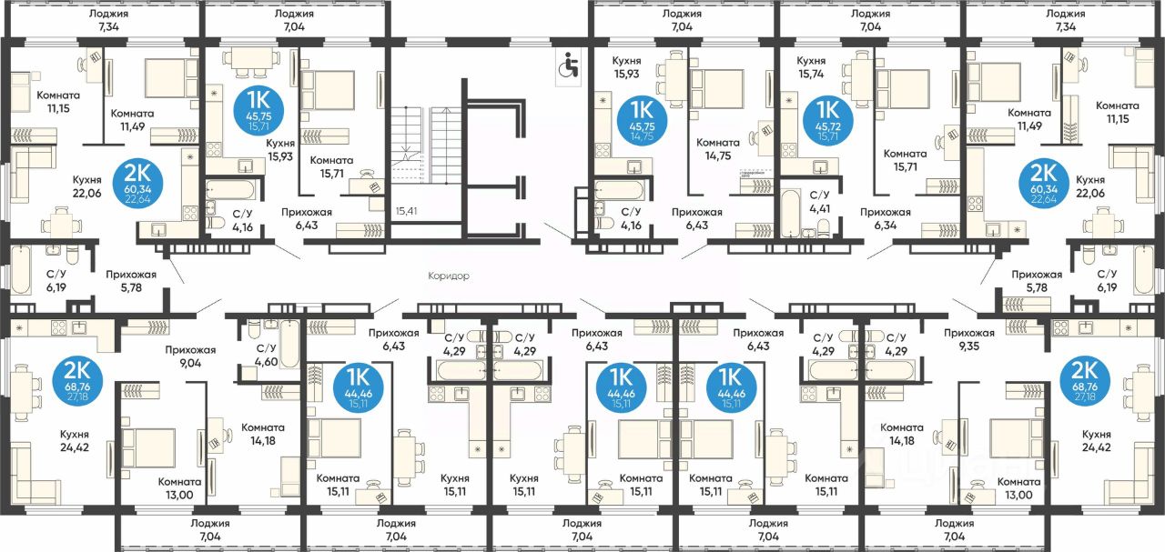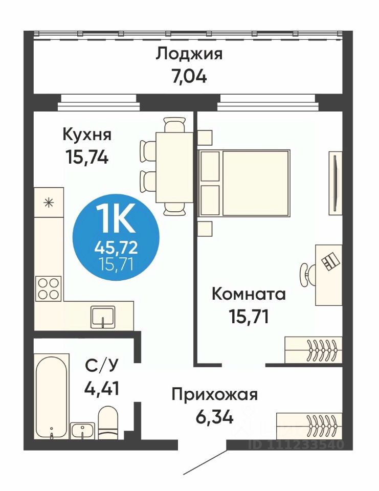 Общая площадь45,72 м2