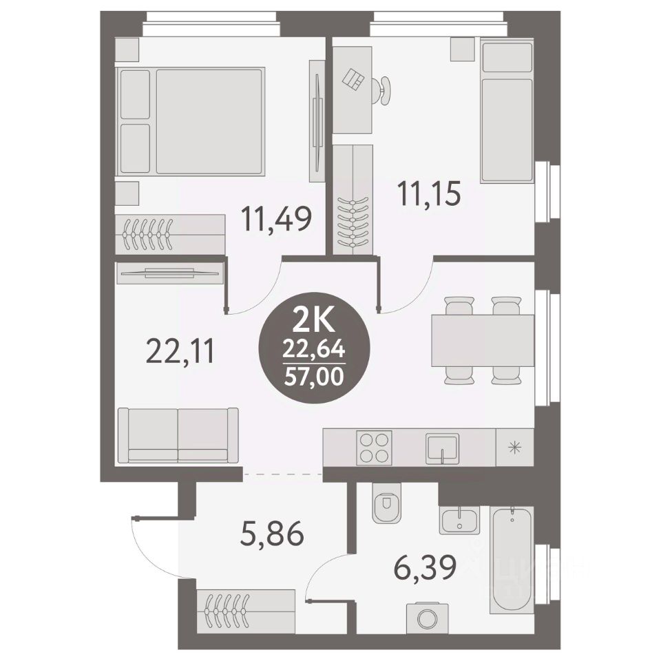 Общая площадь57 м2