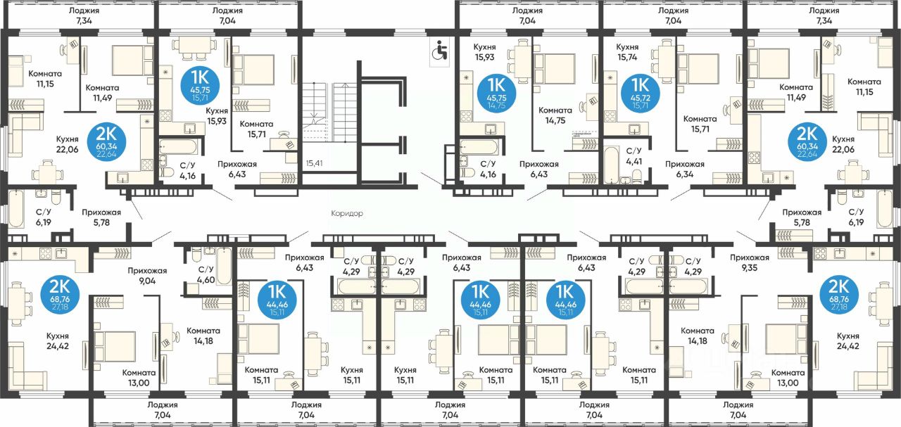 Общая площадь45,75 м2
