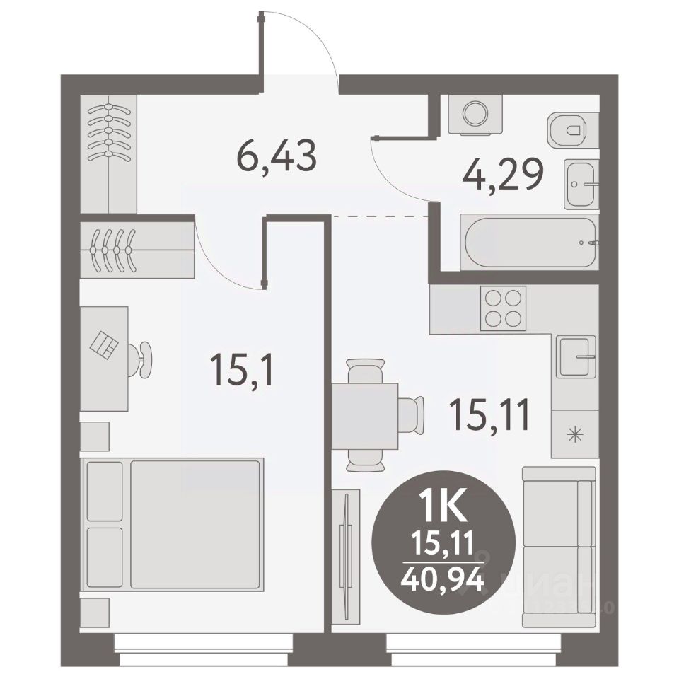 Общая площадь40,94 м2