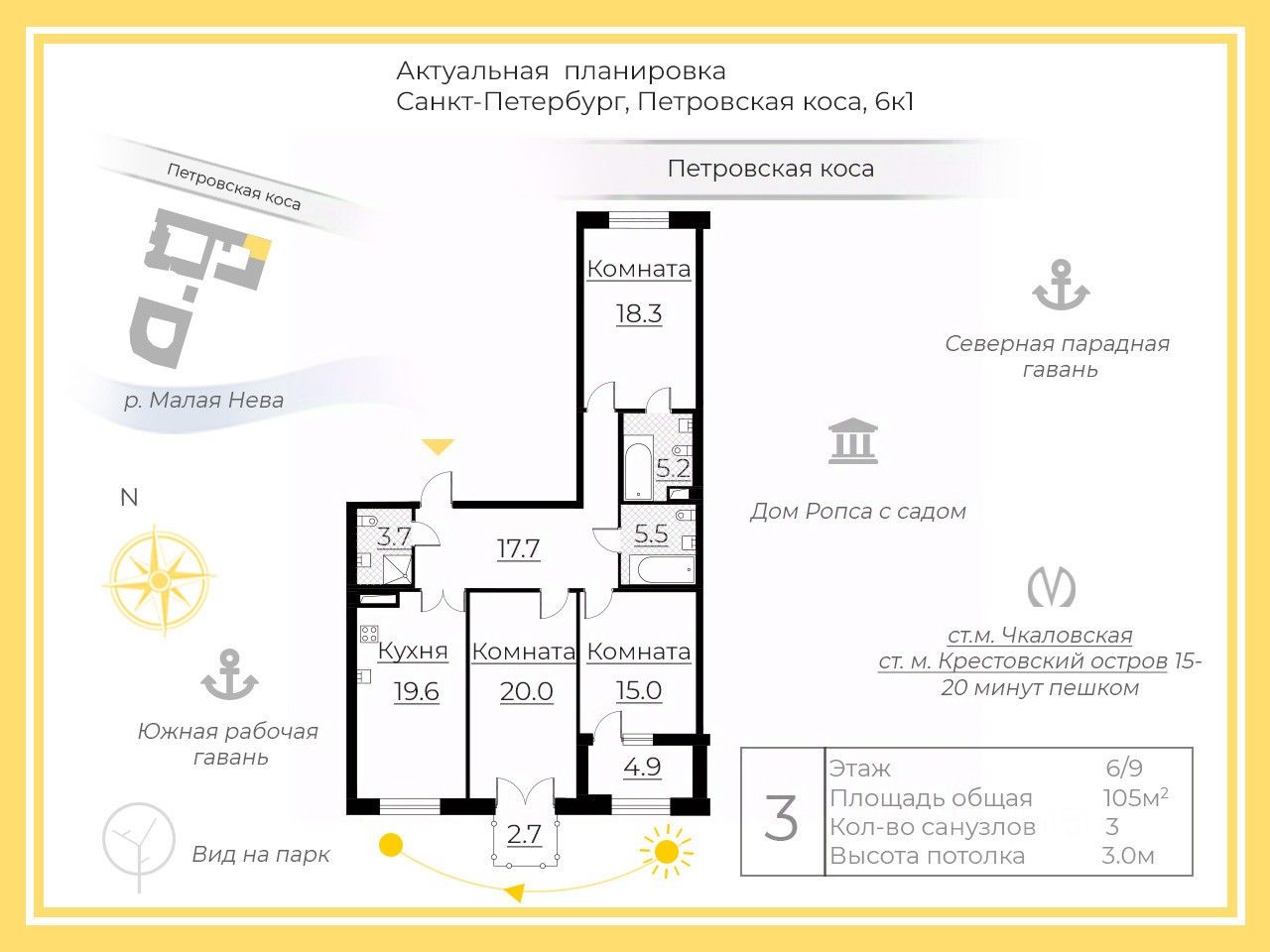 Арт. 109237688 Уникальное предложение на Петровском острове в ЖК Петровская Доминанта! Квартира с видом на Малую Невку!