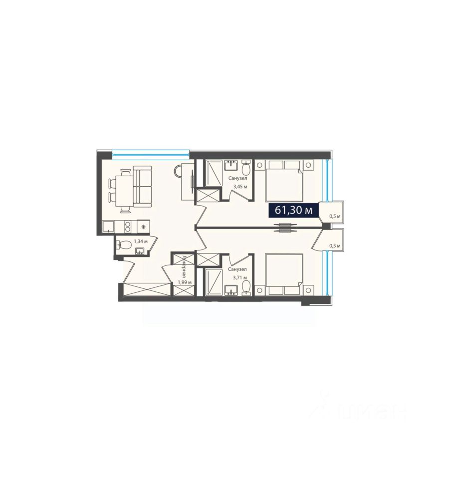 Общая площадь61,3 м2