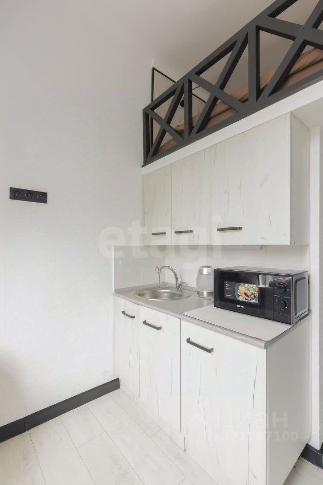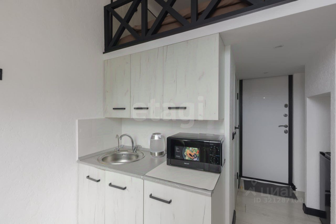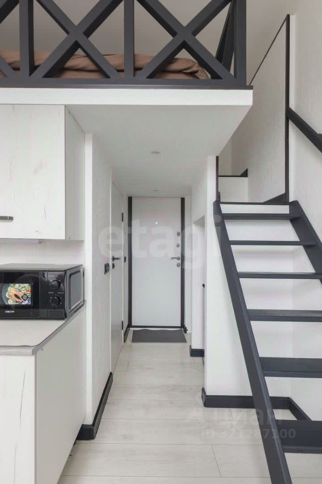 Уютная комната со свежим ремонтом в современном стиле готова к заезду: есть вся необходимая мебель и техника. Особенность удобная двухуровневая организация пространства: на втором ярусе расположена кровать. Внизу зона гостиной и кухни, ванная комната.