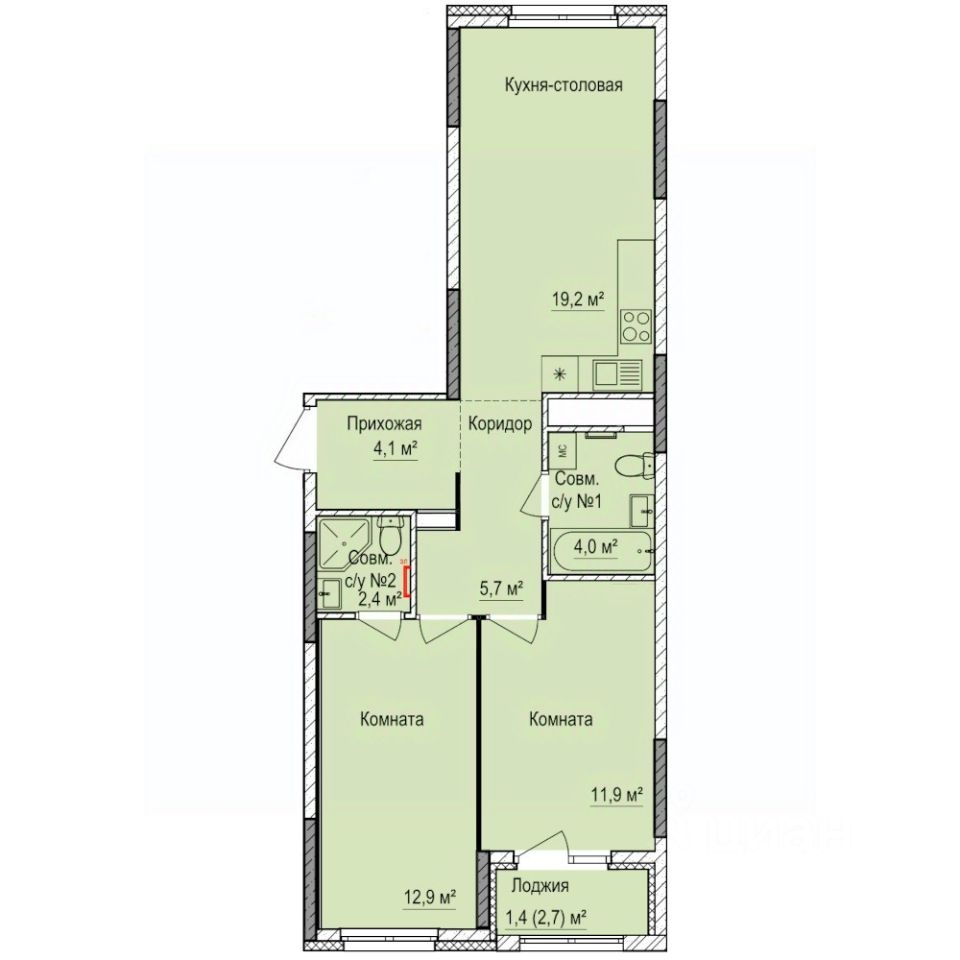 Продаётся 2-комнатная квартира в строящемся доме (Дом 7), срок сдачи: III-кв. 2028, общей площадью 61.6 кв.м., на 14 этаже. Квартира от застройщика КОМОССТРОЙ. Покупка защищена ФЗ 214 с использованием эскроу счетов.