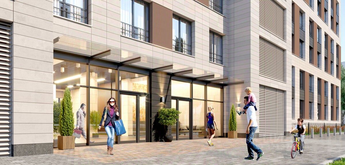 Композиция проекта - современная трактовка классических архитектурных традиций. Дом высотой от 6 до 8 этажей имеет правильную форму каре с уютным двором в центре. Фасады будут облицованы натуральным камнем, керамогранитом и экологичными терракотовыми панелями. За счет благородных материалов и гармоничной светлой палитры создается благородный облик. Главные фасады обращены в сторону Петровского проспекта и Малой Невы. Вдоль линии воды расположатся квартиры с открытыми просторными террасами, откуда открываются панорамные виды. Доступ на территорию дома и в парадную осуществляется через центральную входную группу с reception и круглосуточной охраной.