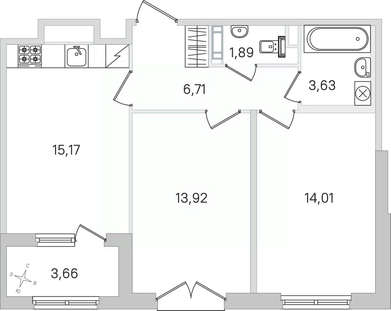 продам 2-к квартира15 750 957 ₽