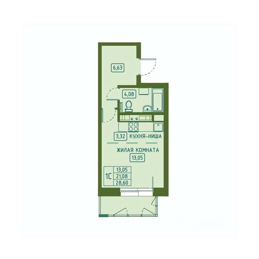 Общая площадь28,6 м2
