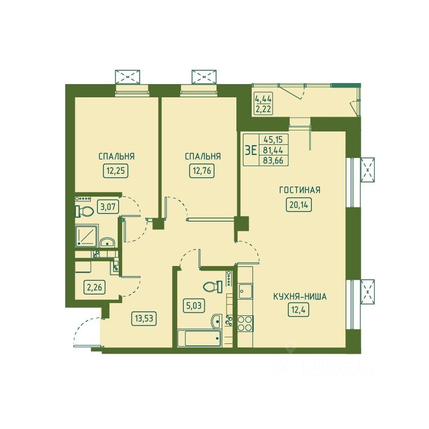 Общая площадь83,66 м2