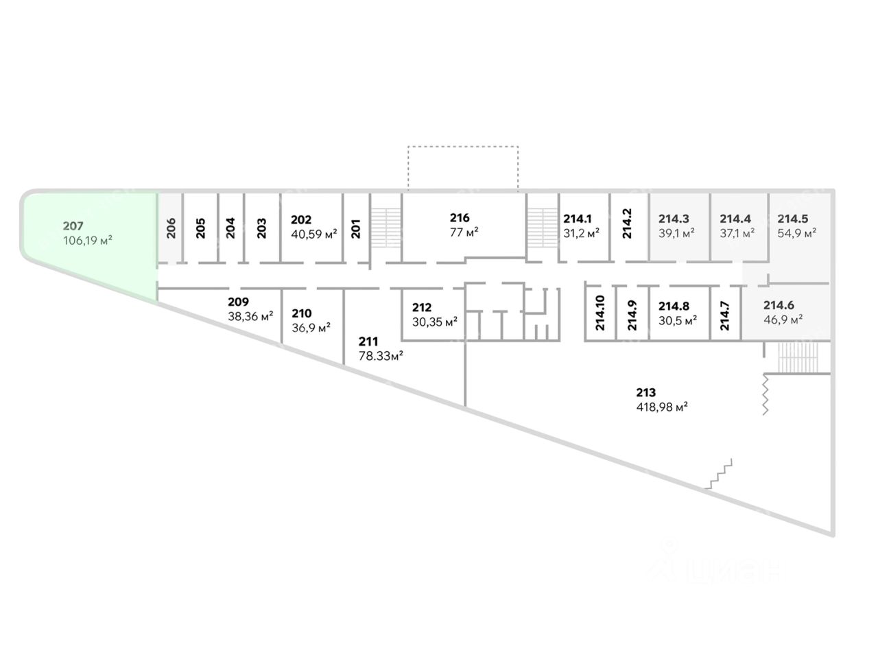 - Размер типового этажа: 1562,