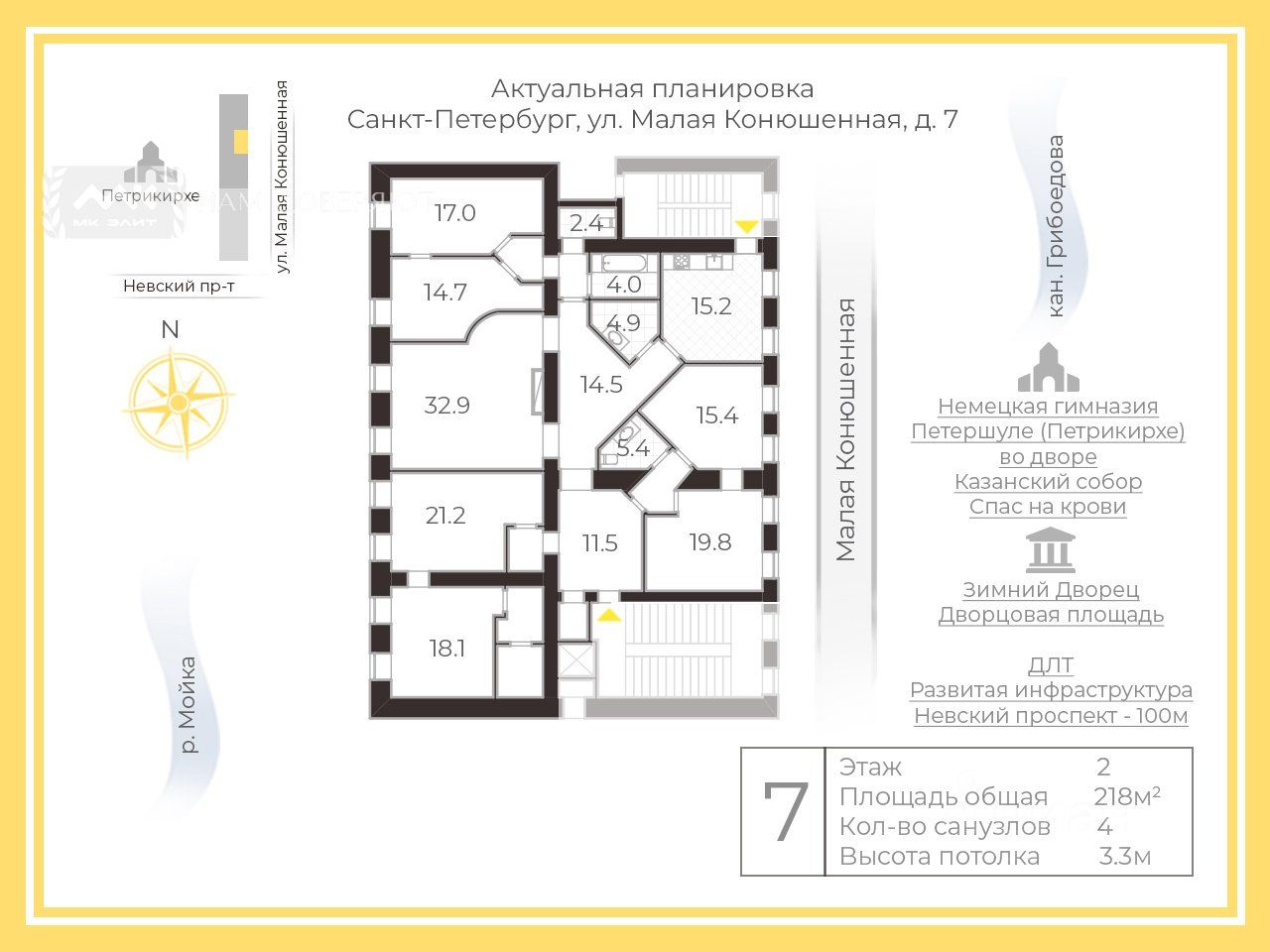 Арт. 3339642 В самом сердце Петербурга, на Малой Конюшенной улице продается уникальная квартира.