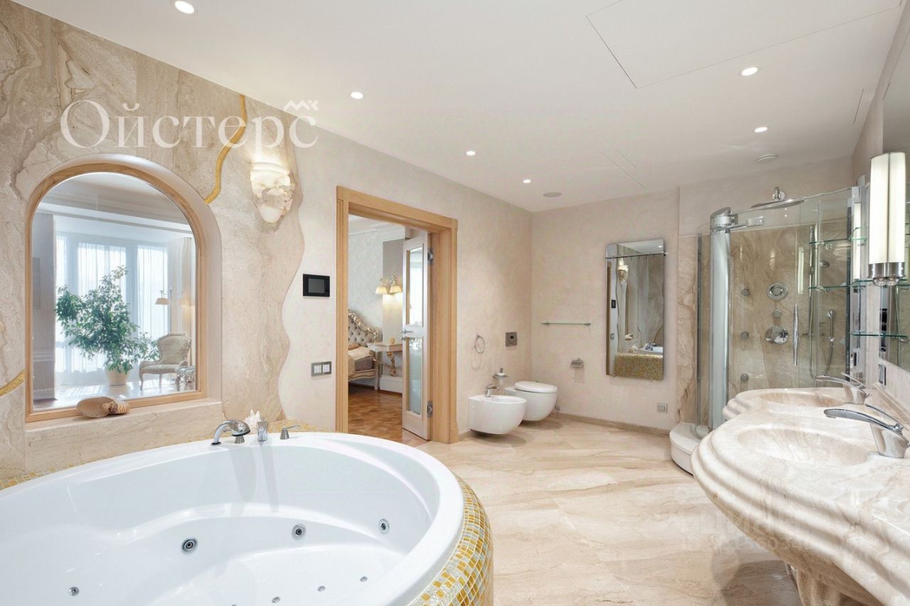Арт. 71564839 Апартаменты площадью 280.2 кв.м. в легендарном жилом комплексе ''Пятый Элемент'', расположенном на Крестовском острове на территории Приморского парка Победы. Уникальная возможность жить в гармонии с природой! Дом окружен зеленью, главный фасад обращен на Южный пруд. Ухоженная закрытая территория с контролем доступа и видеонаблюдением, профессиональная охрана 24/7. В доме 38 квартир, автономная котельная, бесшумные лифты OTIS, спускающиеся в паркинг, места для хранения сезонной резины и велосипедов. Квартира находится на третьем этаже (одна на этаже). Просторные эркеры и панорамные окна на восточную и южную стороны наполняют квартиру светом и открывают великолепный вид на парк Крестовского острова. Открытые пространства и эргономичные дизайнерские решения в стиле современной классики, роскошные каменные полы, паркет и встроенная мебель из натурального дерева. Просторный холл с вместительным шкафом-купе и гостевым санузлом. Гостиная в светлых тонах. Итальянская мебель TURA, MINOTTI и тёплый янтарного цвета паркет в сочетании с подсвеченными изнутри колоннами из оникса и инсталляцией-водопадом создают уютную атмосферу. Зона домашнего кинотеатра с большим экраном оборудована аппаратурой LINN и BOSENDORFER. Гостиная объединена с удобно расположенной кухней, техника GAGGENAU и KUPPERSBUSCH встроена в кухню BULTHAUP. В эркере кухни расположена барная стойка, позволяющая наслаждаться красивыми панорамными видами за окном. Помимо гостиной предусмотрена уютная комната отдыха, она же кабинет, с мягкими диванами PROVASI, действующим камином, морским аквариумом и рабочей зоной. Приватная зона удалена от входа в квартиру, просторная мастер-спальня с мебелью SAVIO FIRMINO располагает собственной ванной комнатой с гидромассажной ванной, сантехника VILLEROY&BOCH, DORN BRACHT, HANSGROHE. Гардеробная комната с окном. Для детской/гостевой комнаты предусмотрен санузел с ванной. Есть хозяйственная комната для работы домашнего персонала и хранения бытовых принадлежностей. Количество изолированных комнат может быть увеличено до 4-х. Квартира оснащена автоматикой. Конвекторы водяного отопления с вентиляторами принудительного продува, встроенные в пол, и системы кондиционирования и приточно-вытяжной вентиляции с предварительным подогревом/охлаждением воздуха объединены в единую систему управления климатом. Теплые полы в санузлах, холле и на кухне. Многоуровневое диммируемое светодиодное освещение, электроприводы на блэкаутах и шторах. Встроенные акустические системы премиум-класса объединены в систему мультирум. Программируемые выключатели и панели позволяют управлять климатом, светом, шторами, музыкой и устанавливать различные сценарии одним нажатием. Удаленное видеонаблюдение, оповещение в случае проникновения, задымления или протечки (с автоматическим перекрытием воды). Выделенная мощность электроэнергии 38.6 кВт позволяет установить сауну. Дополнительно предлагаются два комфортных парковочных места 6х3м в подземном паркинге.