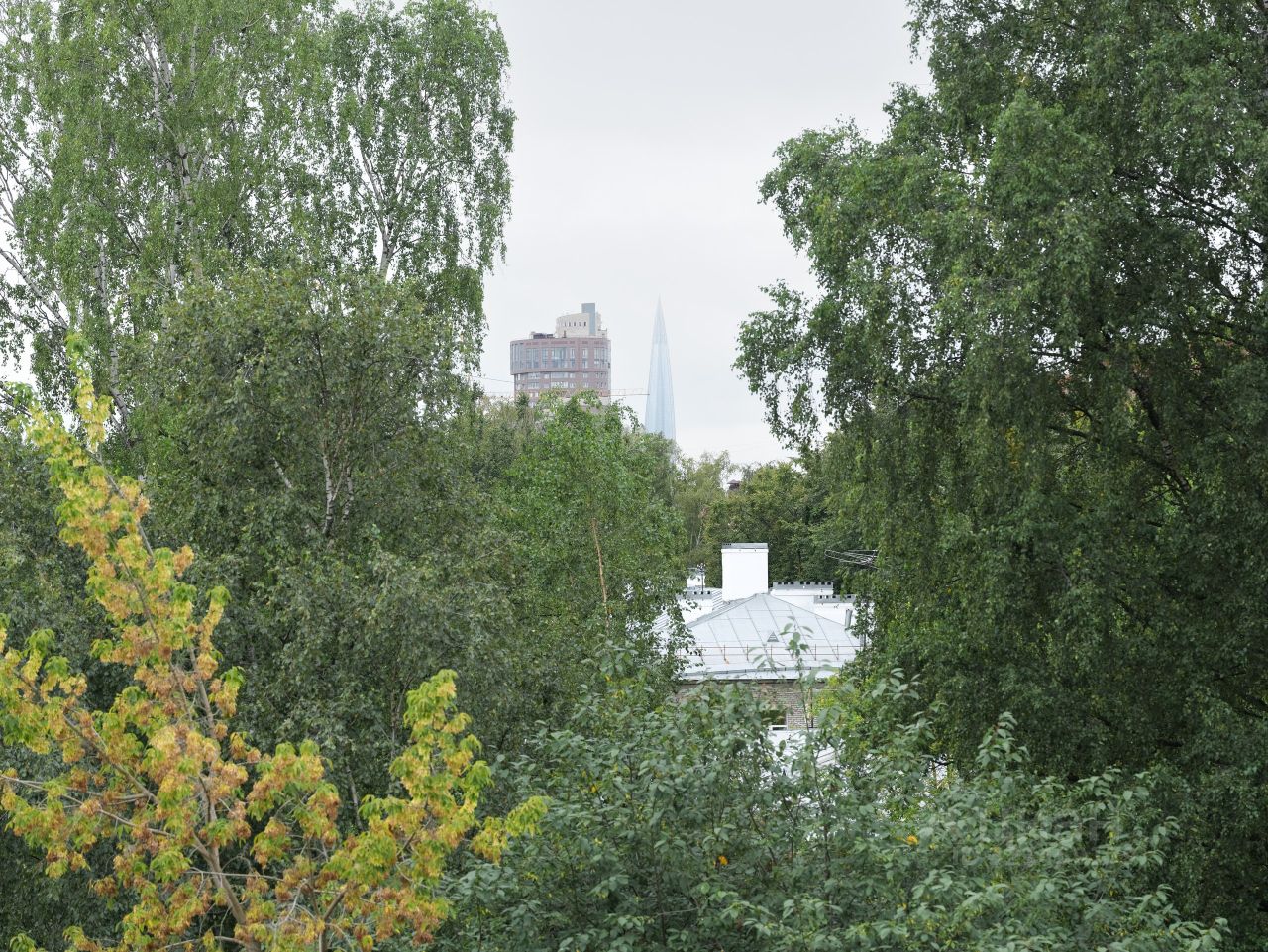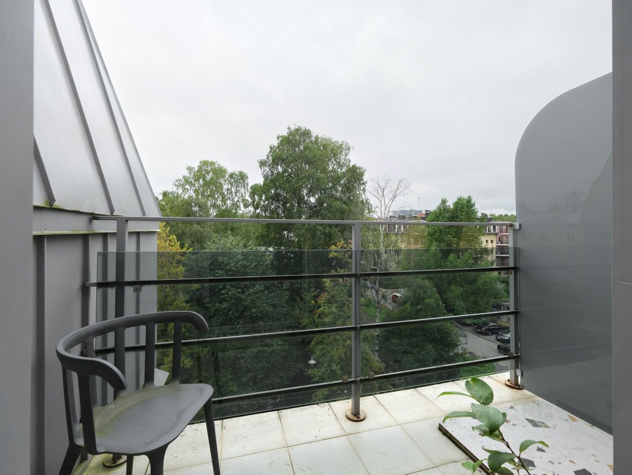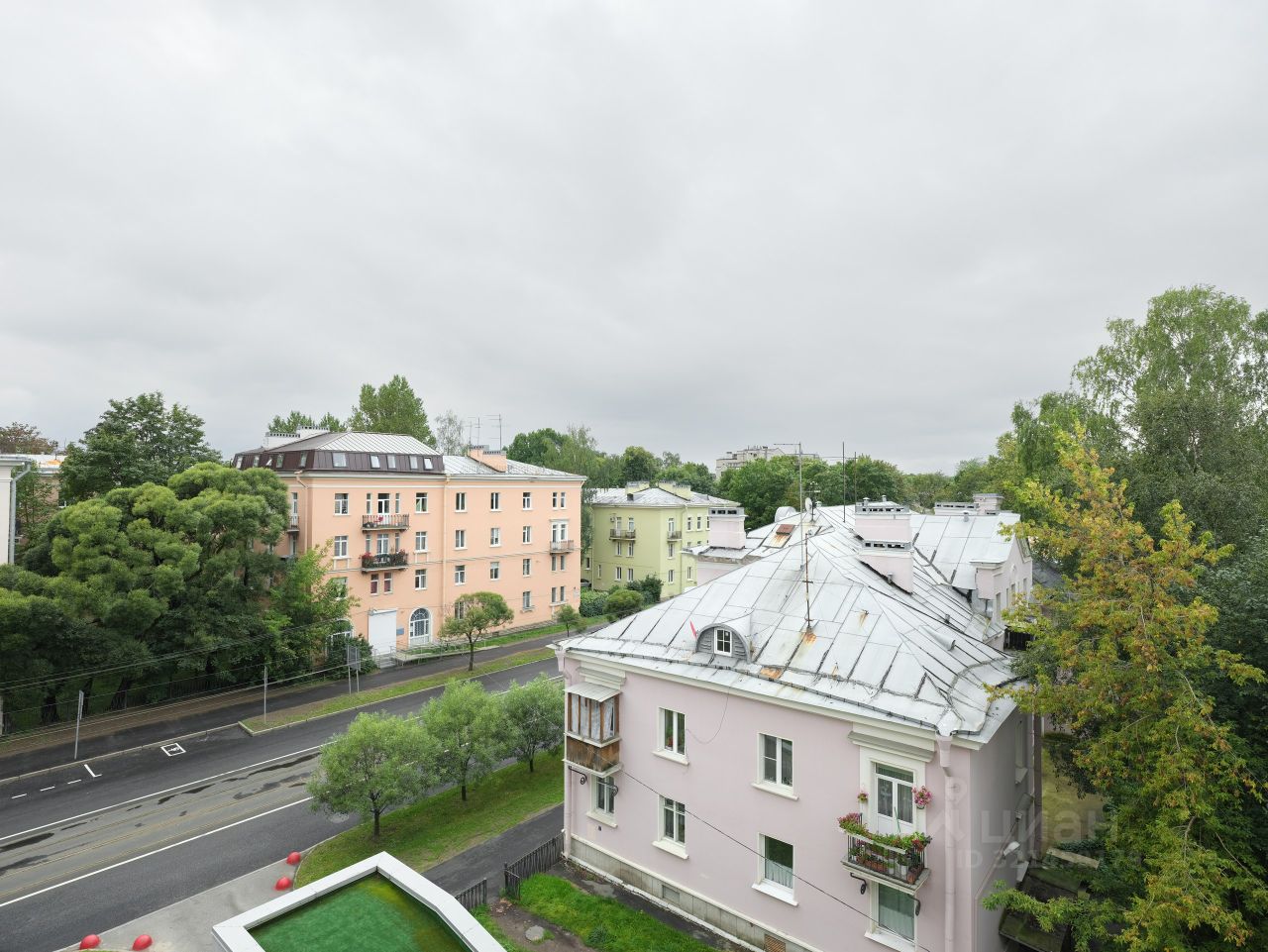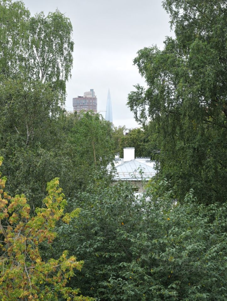 - С балкона квартиры можно наслаждаться потрясающим видом на город, двор, утопающий в зелени и Лахта-центр,