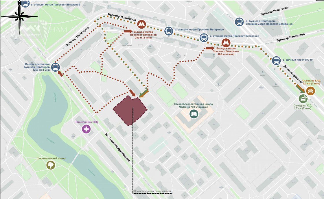 Всего в 2 минутах пешком от метро Проспект Ветеранов продаётся земельный участок площадью 3 400 м². Это идеальная локация для создания современного спортивного комплекса (падел-корты) — одного из самых быстрорастущих видов спорта в мире.
