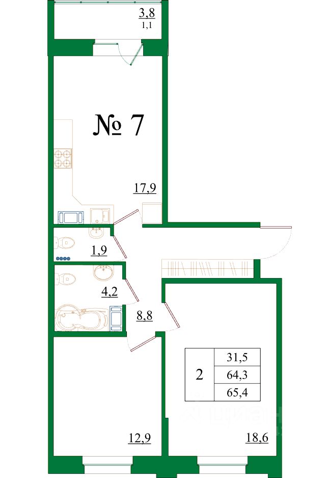 Общая площадь65,4 м2