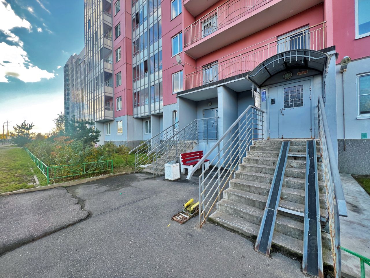 ДОМ Общий коридор с соседями отделён от лифтового холла закрываемой металлической дверью, в общем коридоре от нашей квартиры есть небольшой белый шкаф, где можно оставить вещи В парадной два лифта (грузовой+пассажирский) В лифтах и парадной установлены камеры Выход в сторону улицы Малиновского и во двор На входном крыльце установлен пандус для колясок