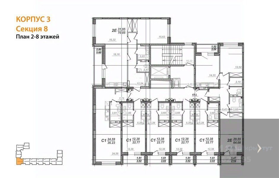 Квартира: 2 к 64,08 кв.м., 4 этаж в комплексе Победа, 2 очередь, корп.3, сдача: 1кв. , этажей: 8, адрес Новая Усмань село, Полевая ул., , Застройщик: ГК ПЕРВОГРАД.