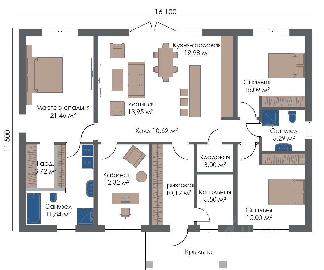 - мастер-спальня с гардеробом и своим санузлом 37 м²