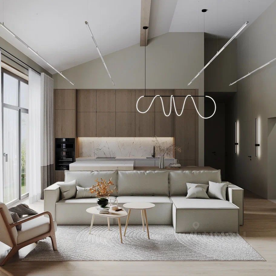 - просторная кухня-гостиная 34 м² с выходом на террасу
