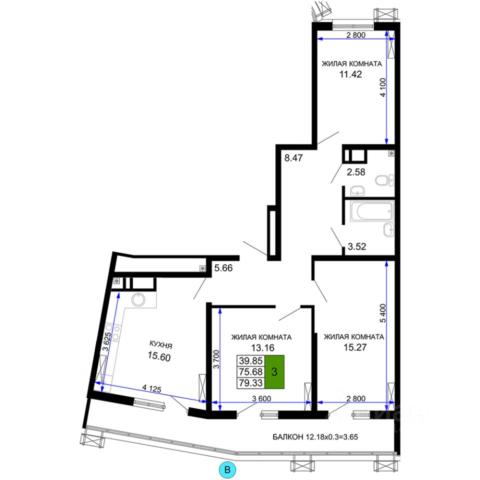 продам 3-к, Воронежская, 47/1016 554 300 ₽