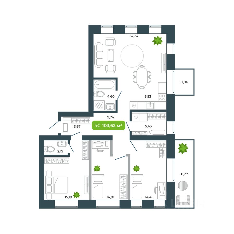 Квартира в квартале-парке комфорт-класса ''Ботаника'' (Кольцово, Новосибирск).