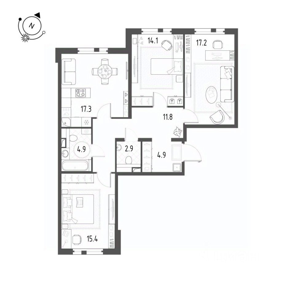 Дом комфорт-класса. На этаже 5 квартир. Закрытый двор. Парные выполнены в современном стиле. Квартира на 2этаже , в доме 12 этажей. В доме современным подземным паркинг, а это прежде всего, безопасность вашего автомобиля. Также в доме есть предусмотрен пандус. Это дает возможность очень легко перемещаться с коляской или велосипедо м. Безбарьерная входная группа- вход в парадную без порожка. Развитая инфраструктура, школа, детский сад и поликлиника - рядом. На данный момент до метро Купчино, м.Звездная и м.Шушары можно добраться за 10-13 минут на машине. Выезд на КАД, рядом, а так же в ближайшее время , рядом с домом будет остановка трамвая 'Купчино - Шушары', до ст. метро Купчино можно будет добраться за 10 минут на трамвае. Это трамвайная ветка уже готова к сдаче. Просторная лоджия. Кухня-гостиная 17,3м2. Прихожая 11,8м2. Санузел 2,9 м2. Ванная комната 4,9 м2. Комнаты 15,4 м2. +17,2+14,1м2. В квартире два санузла, один из которых совмещён с ванной. Площадь санузлов позволит разместить необходимую сантехнику, полноценную ванну, стиральную машину. Три просторные жилые комнаты спальни, правильная конфигурация которых позволит разместить мебель с учётом потребностей каждого члена семьи. Детские площадки прорезиненные. Инфраструктура развита. В шаговой доступности новая школа, магазины, пункты выдачи маркетплейсов, продуктовые магазины 24 часа. Квартира без отделки, что дает возможность реализовать свои дизайнерские фантазии и создать интерьер на свой вкус. В квартире раздельный санузел , окна квартиры выходят во двор и на улицу. Квартира готова к продаже, по договору купли- продажи. Возможна ипотека, в том числе и семейная.