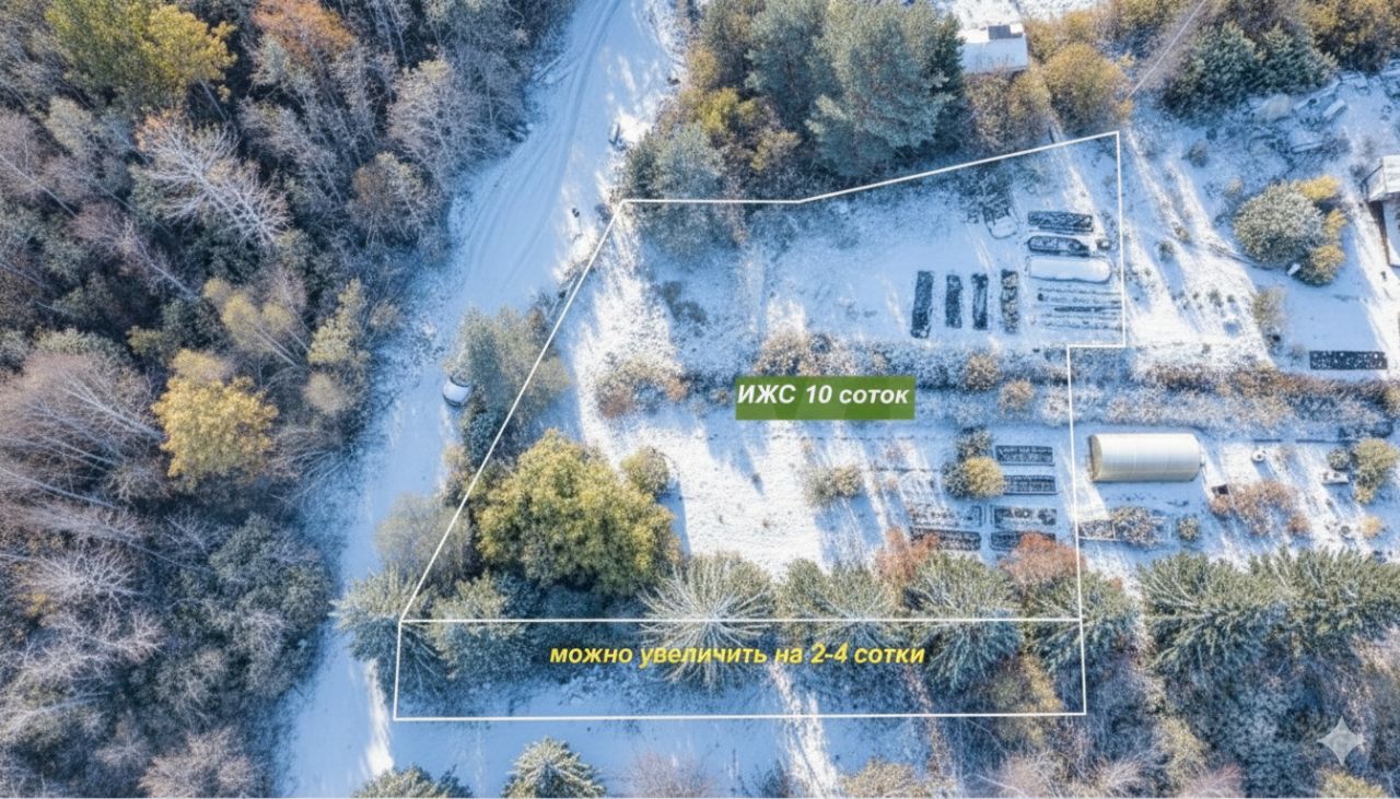 Участок 33х30 метров. Есть возможность официально увеличить на 2 сотки. Заезд на участок возможен с двух дорог.