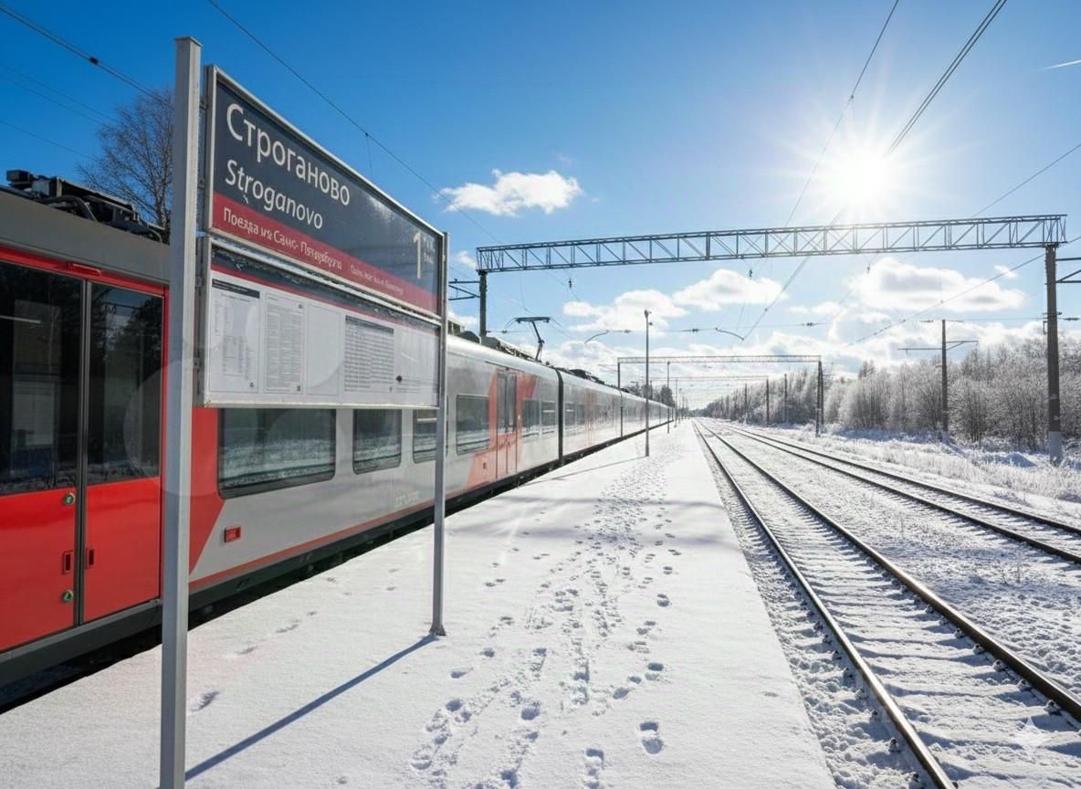 В пешей доступности остановка, магазин, ж/д Строганово.