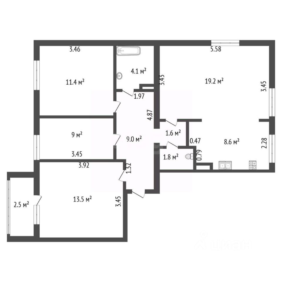 Ключевым преимуществом объекта является продуманная эргономичная планировка. За счет объединения кухни и одной из комнат образована светлая кухня-гостиная площадью 27,8 м², идеально подходящая для жизни и приема гостей. Три изолированные комнаты площадью 13,5, 11,4 и 9 м² обеспечивают приватность для всех членов семьи. Дополнительным пространством служит лоджия 2,5 м².