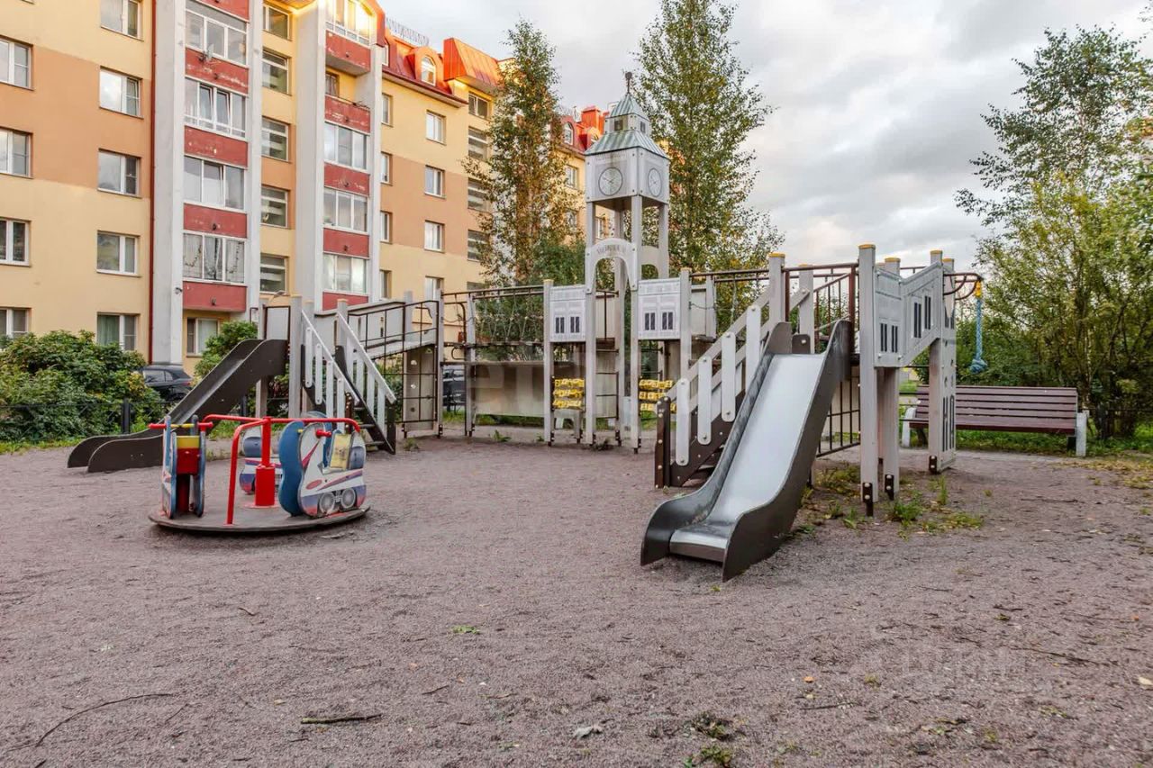 Двор благоустроен, озеленен, оборудована детская площадка. Имеется собственное парковочное место напротив парадной. Управляющая компания обеспечивает регулярную уборку мест общего пользования.