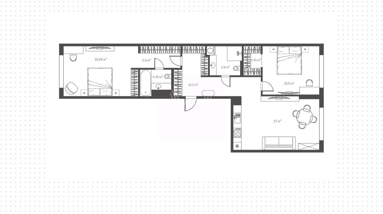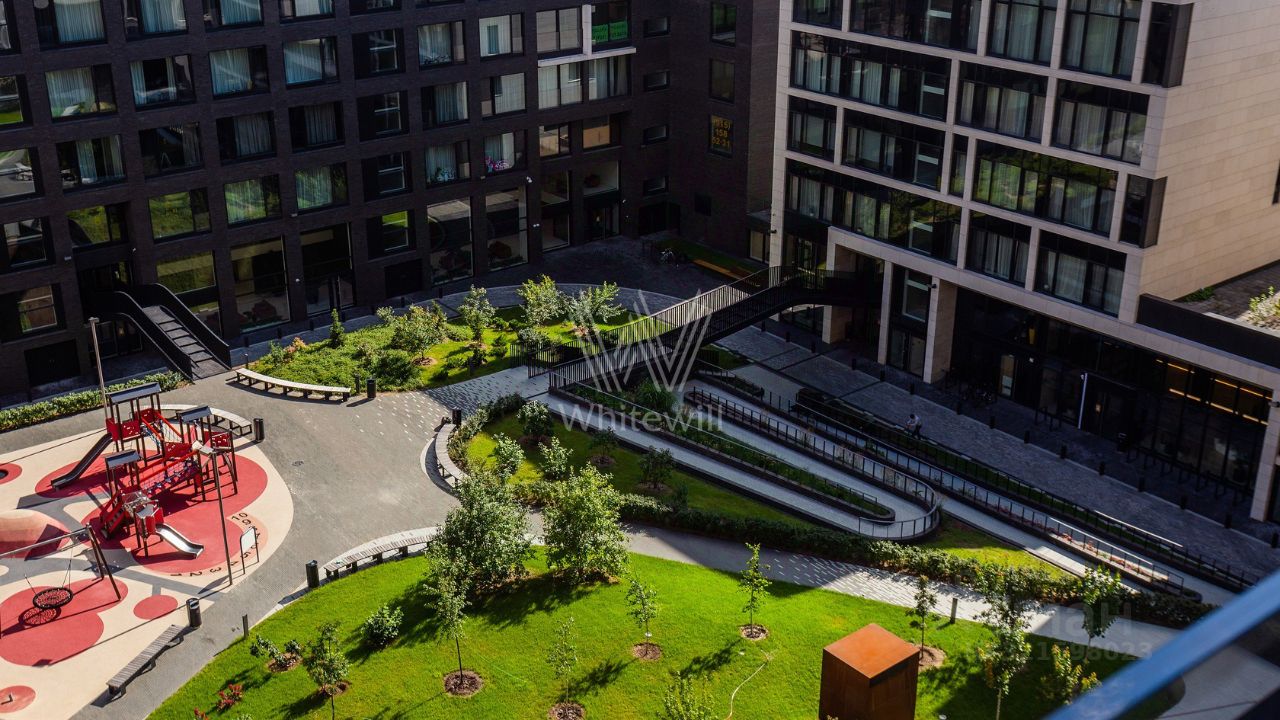 Функциональная планировка включает в себя: кухню-гостиную с обеденной зоной, мастер-спальню со своей ванной комнатой, вторую спальню с гардеробной, санузел с душевой и холл. Благодаря панорамному остеклению пространство наполнено естественным светом и воздухом, открываются виды на благоустроенную территорию комплекса.