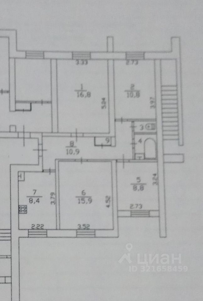 Вашему вниманию предлагается четырехкомнатная квартира в кирпичном доме в центре Всеволожска, общей площадью 76 м.кв., комнаты 16,8+15,9+10,8+8,8 м.кв, кухня 8,4 м.кв., с/у раздельный, окна выходят на восточную и западную стороны, нужен косметический ремонт.